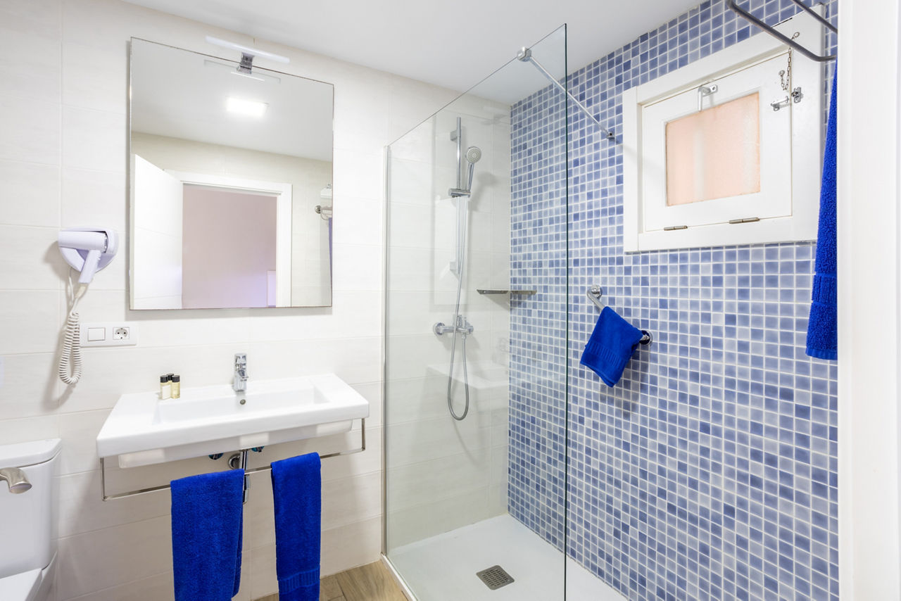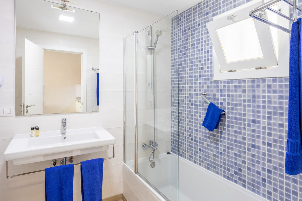 Studios sleep up to 3 adults and have bathroom containing a bath with shower attachment, hairdryer, flat screen television*, double cooking rings, fridge, microwave, tea and coffee making facilities, toaster and balcony or terrace