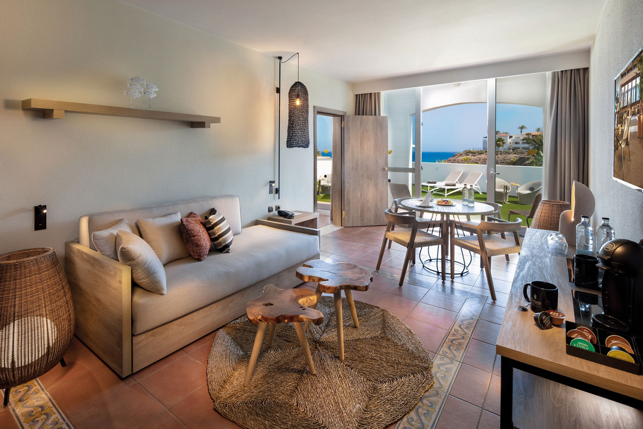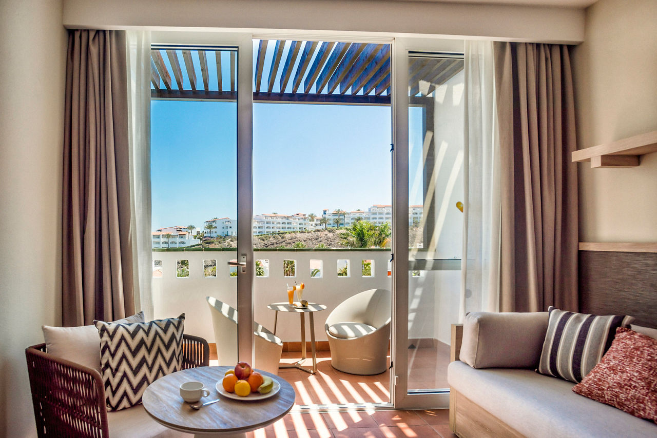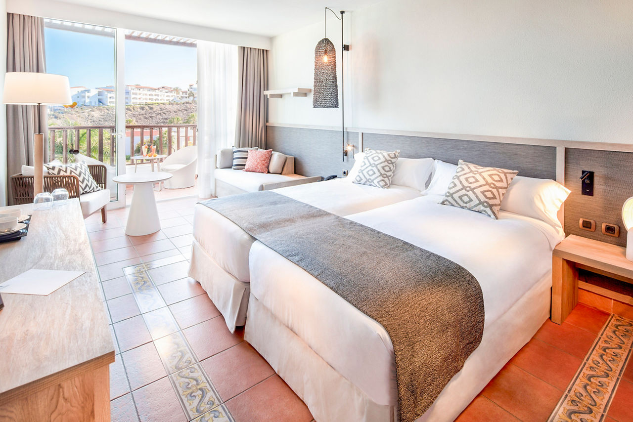 The Fuerteventura Princess, encased in luscious tropical gardens with direct access to the incomparable beauty of Esquinzo de Jandia beach, will not disappoint those looking to soak up the sunshine and dine overlooking the glistening sea. This hotel is ideal for couples and families with plenty of activities to keep everyone entertained including tennis courts, a wellness centre and a maxi club specifically for teenagers. A selection of board basis is available too, so decide if you?re going all-out with All Inclusive or maybe just mealtimes to suit you. Don?t forget to check out the Esencia upgrade, which includes access to exclusive facilities including a pool area, restaurant and many more.Double rooms sleep up to 3 adults and 1 child or 2 adults and 2 children and have twin beds with air-conditioning, mini bar*, satellite TV, safety deposit box*, full bathroom with shower over bath, hairdryer and a balcony or terrace. Double rooms with Side Sea View, Double rooms with Sea View, Family Interconnecting rooms and Double rooms for Sole Use are also available.
