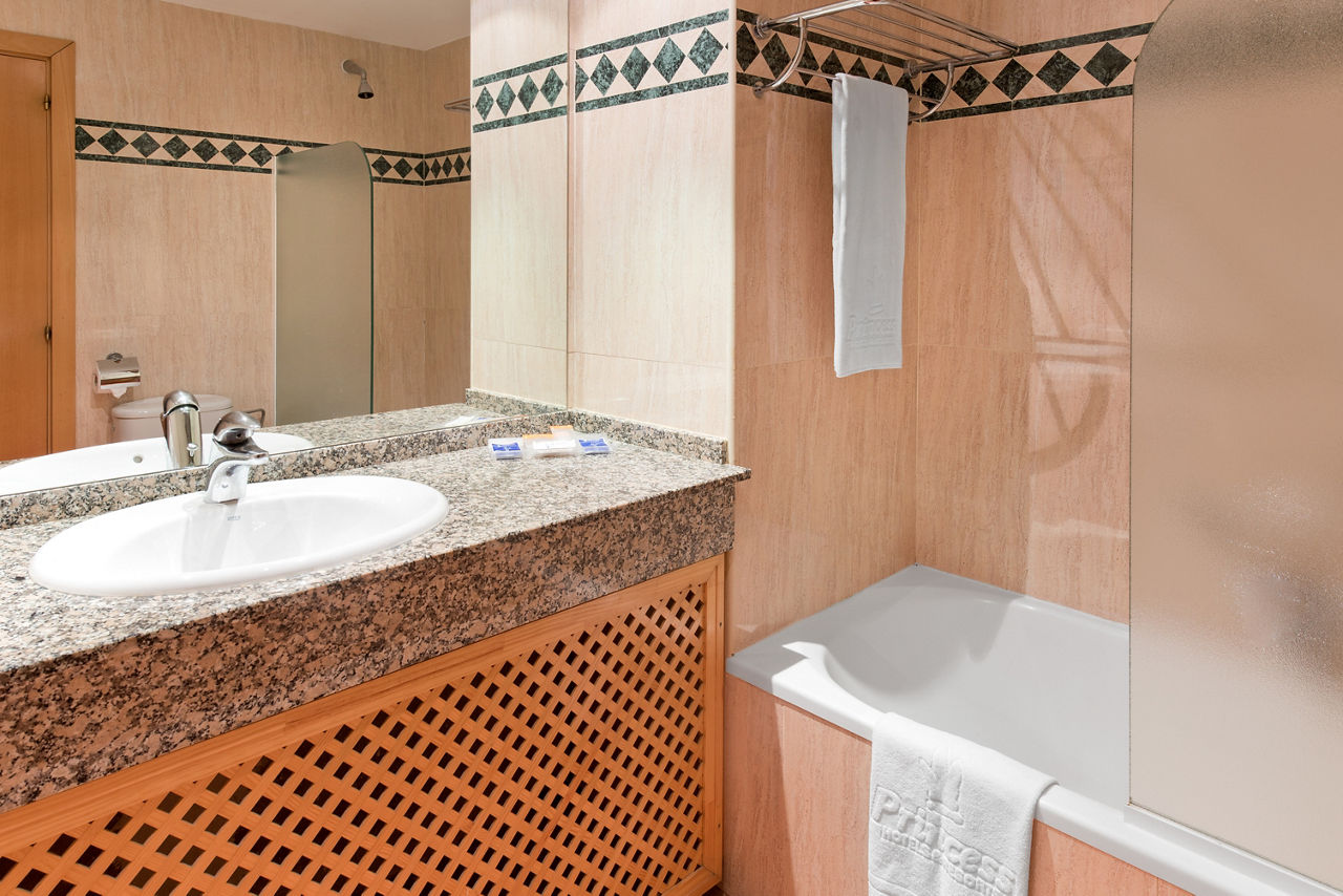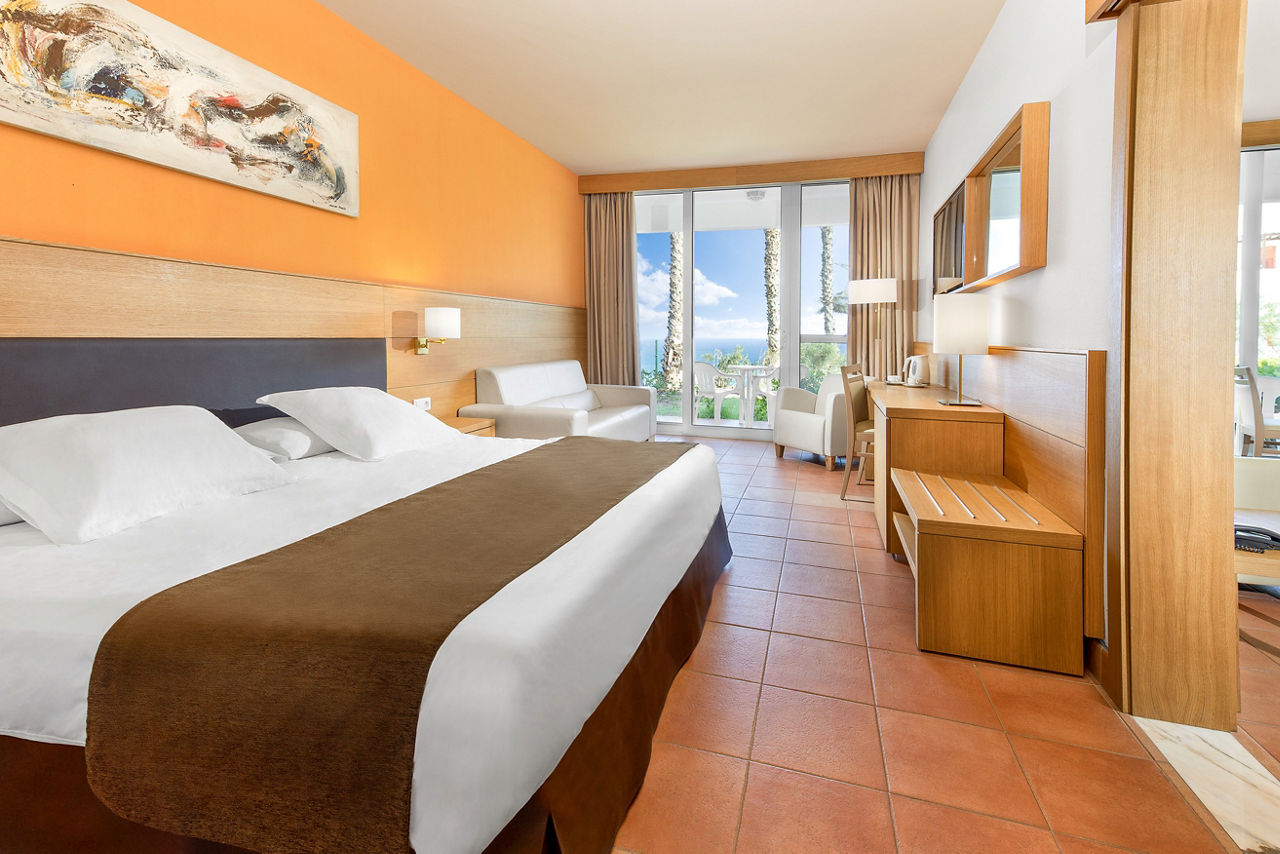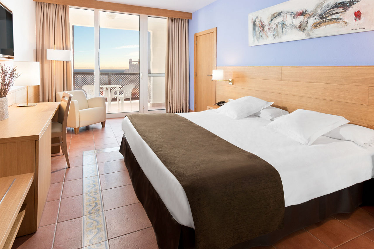 Double rooms sleep up to 3 adults and 1 child or 2 adults and 2 children and have twin beds with air-conditioning, mini bar*, satellite TV, safety deposit box*, full bathroom with shower over bath, hairdryer and a balcony or terrace. Double rooms with Side Sea View, Double rooms with Sea View, Family Interconnecting rooms and Double rooms for Sole Use are also available.