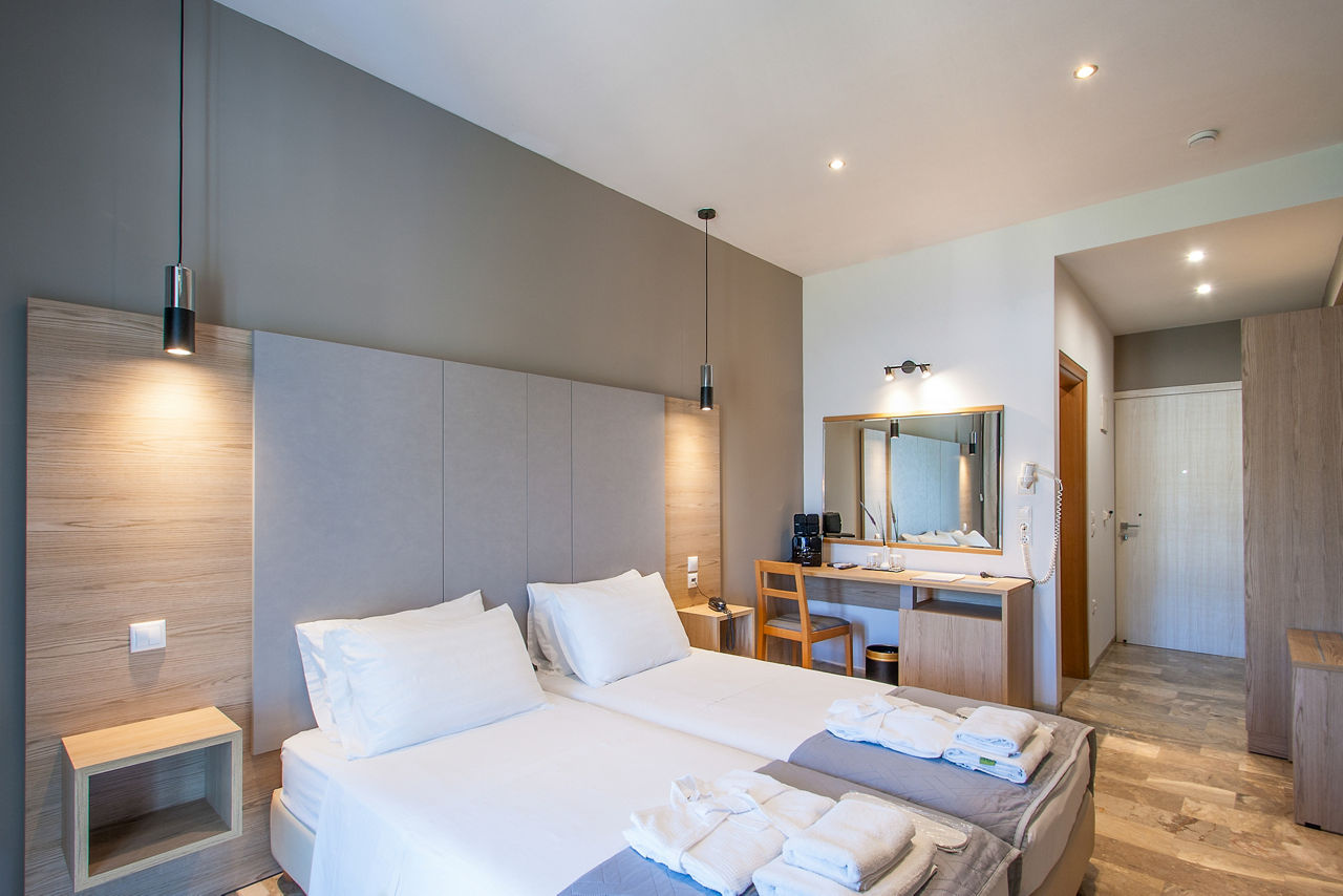 Superior Double rooms sleep 2 adults and have bathroom, air conditioning, hairdruer, flat screen television, fridge and balcony.