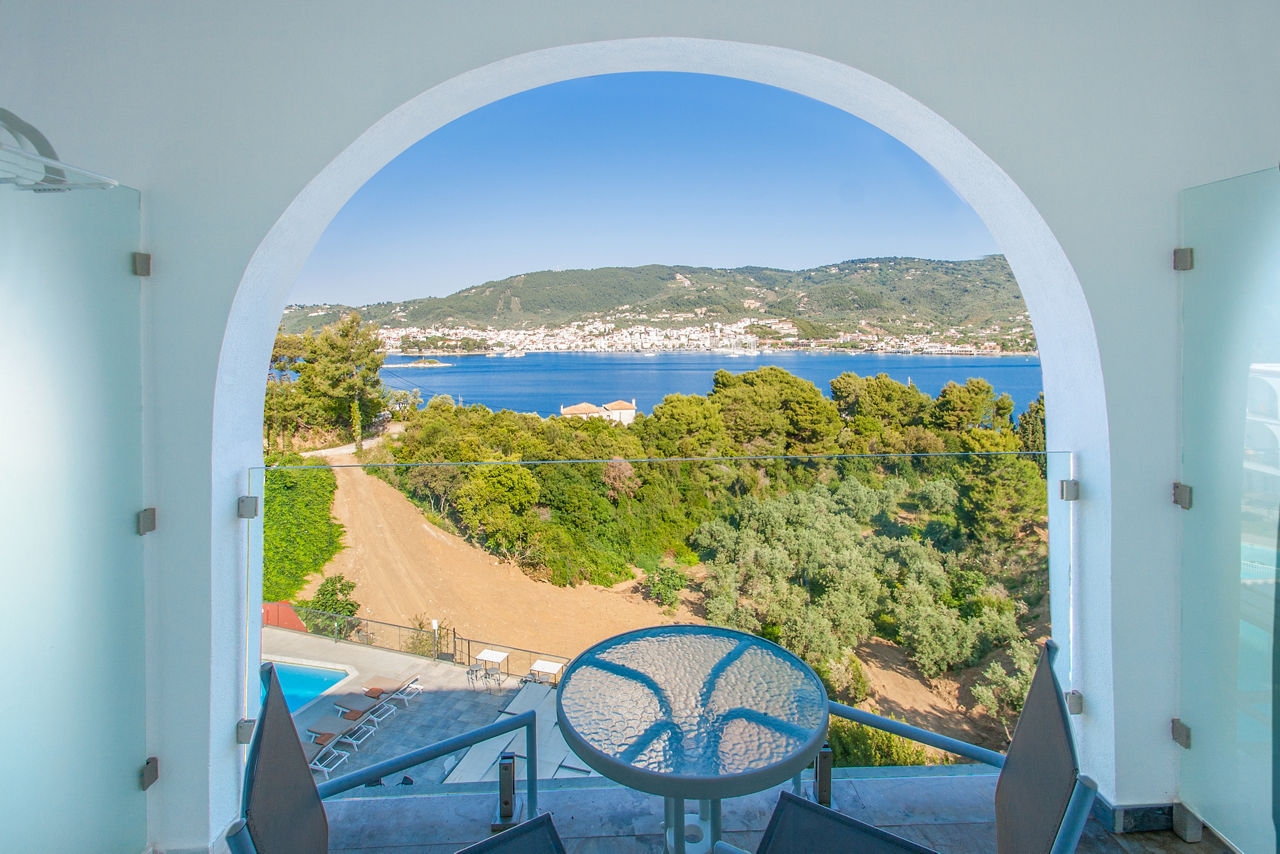 Punta Hotel is the epitome of a serene retreat on the stunning island of Skiathos. With the perfect balance of traditional Greek architecture and modern comforts, this is a fantastic spot for a slice of tranquillity. Fancy some gorgeous Mediterranean cuisine too? Tick. With cypress, olive and pine trees as your backdrop, you?re not short of a panorama or two. The picture-perfect pool and surrounding terrace make for a great viewpoint. For great value for money, comfortable rooms and sweeping bay vistas, Punta Hotel fits the bill. A short drive or a hop on the shuttle bus will bring you to the bustling harbour too.Superior Double rooms sleep 2 adults and have bathroom, air conditioning, hairdruer, flat screen television, fridge and balcony.