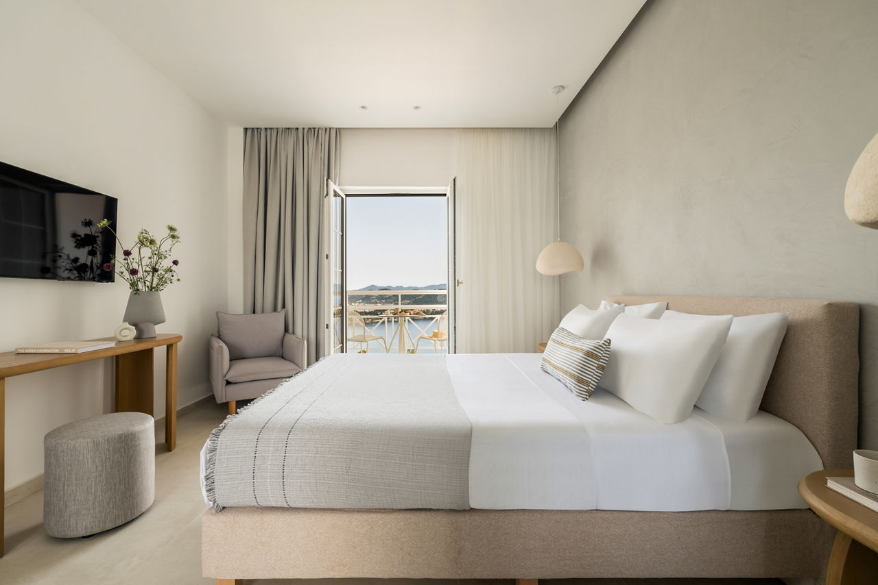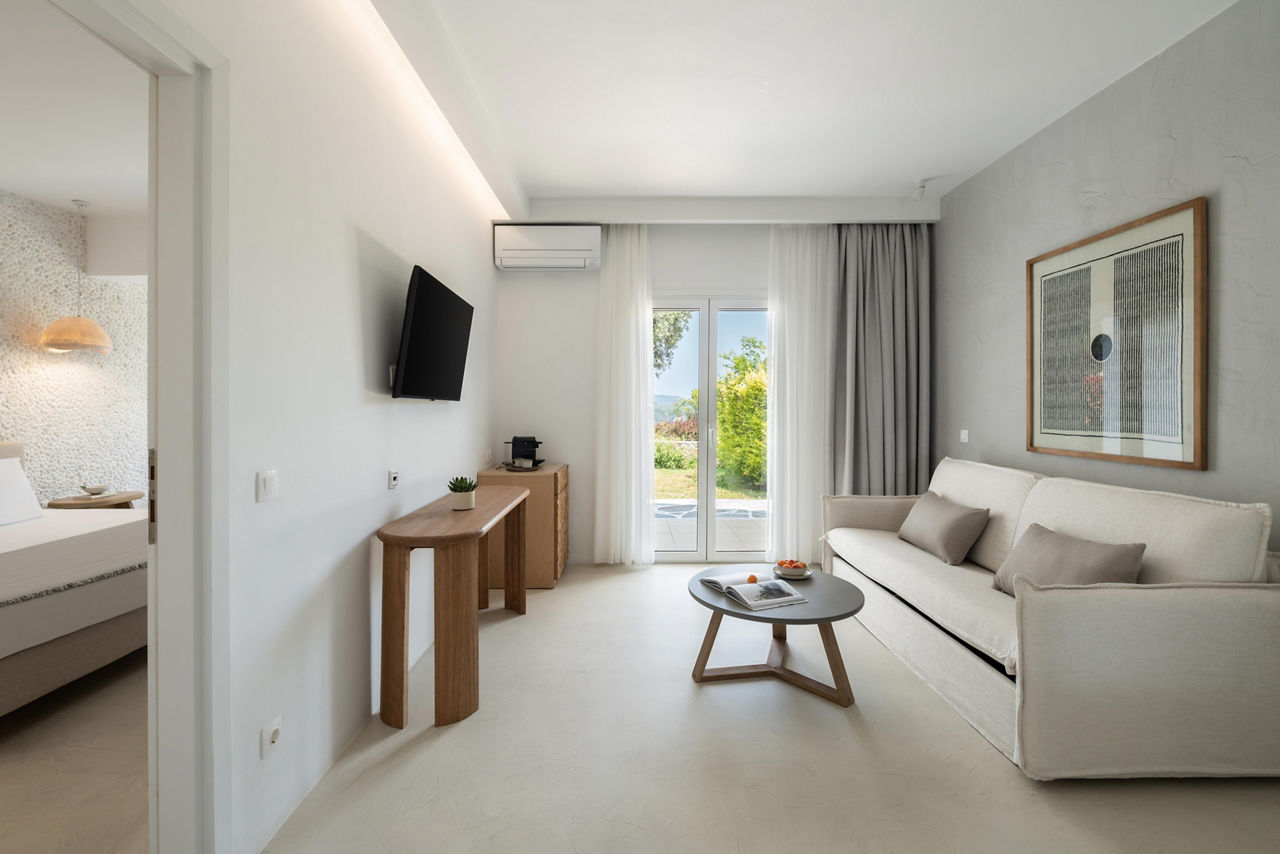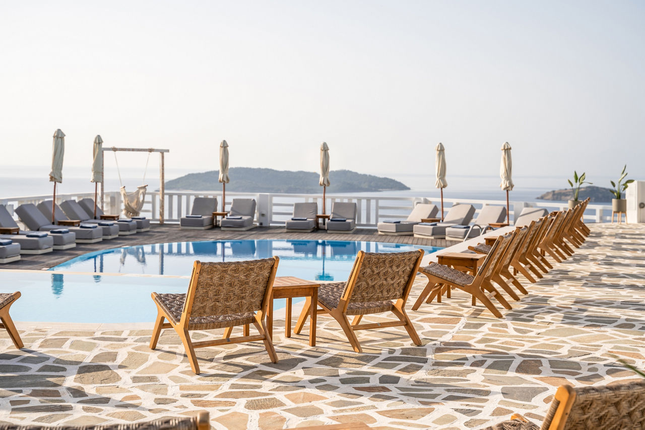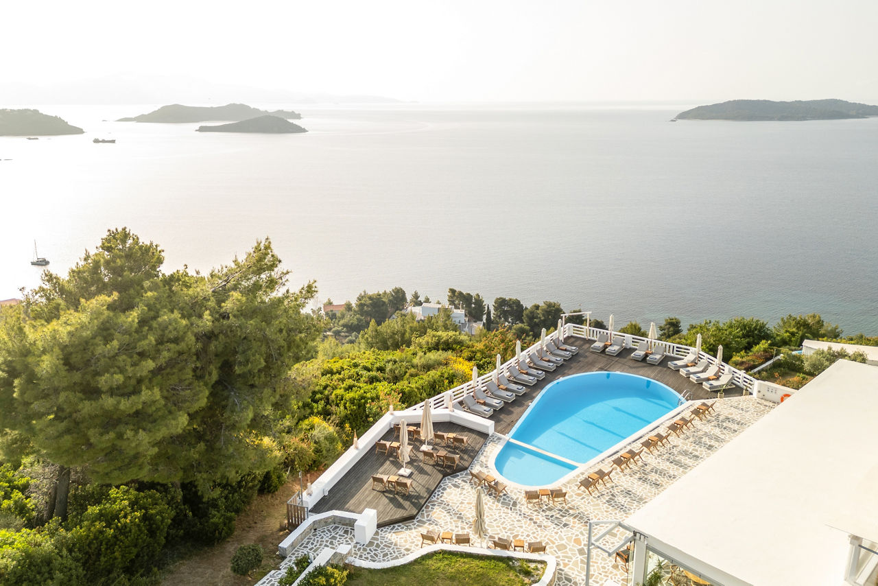 Experience panoramic sea views at this hilltop hideaway. Oniro Skiathos is nestled among olive-grove-backed rolling green hills, offering a stunning pool area with comfy, cushioned sun loungers and a well-stocked bar. The hotel offers cozy rooms which are decorated in neutral tones and feature large, comfortable beds, ensuring a relaxing stay. A convenient shuttle bus connects you to the Skiathos Town and Vasilias Beach, making it easy to explore while enjoying the tranquillity of the secluded location. This hotel is perfectly suited for couples seeking a peaceful and quiet getaway.Double or Twin rooms sleep 2 adults and have bathroom, air conditioning, hairdryer, flat screen television, fridge, tea and coffee making facilities and balcony or terrace. Room upgrade options are also available.