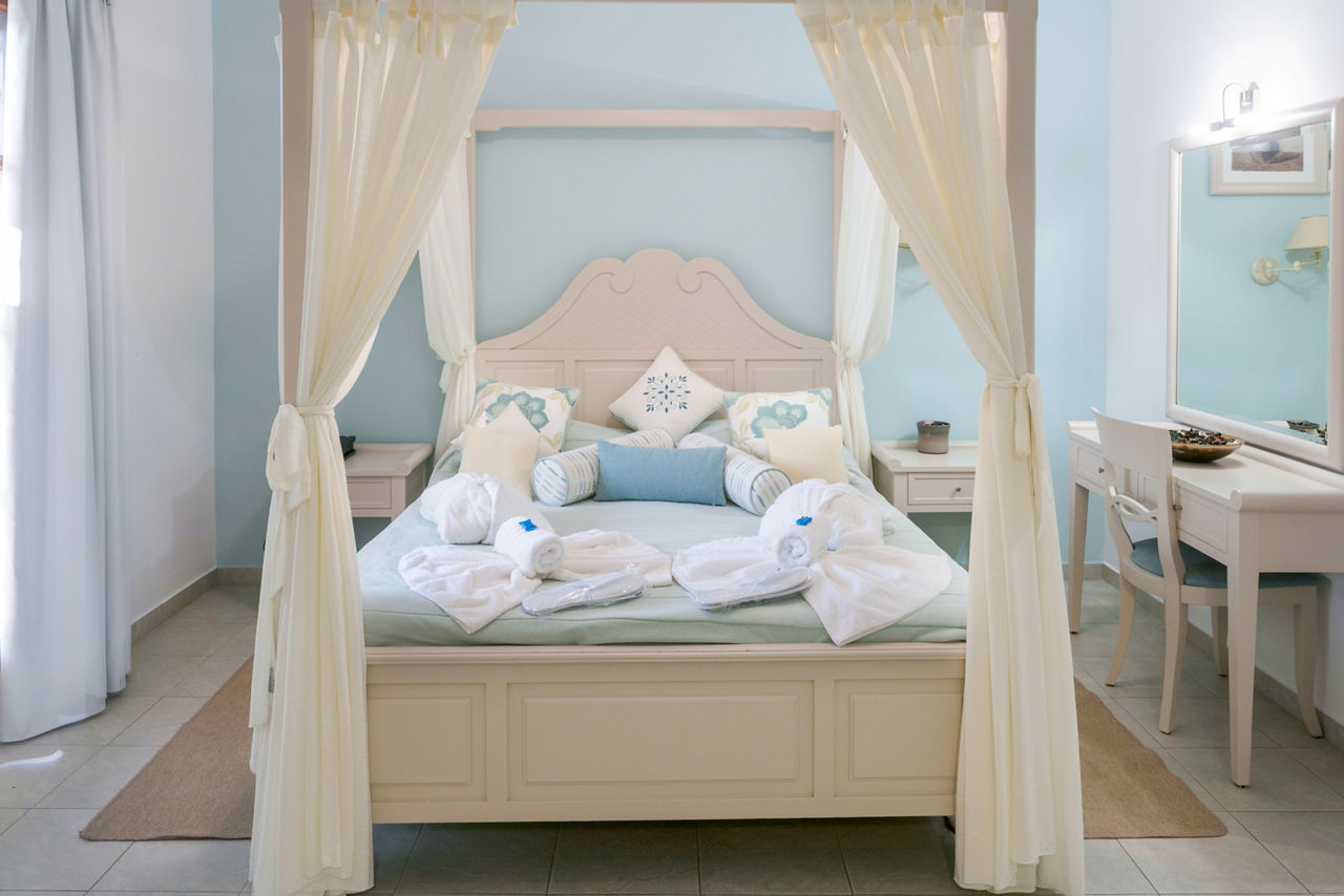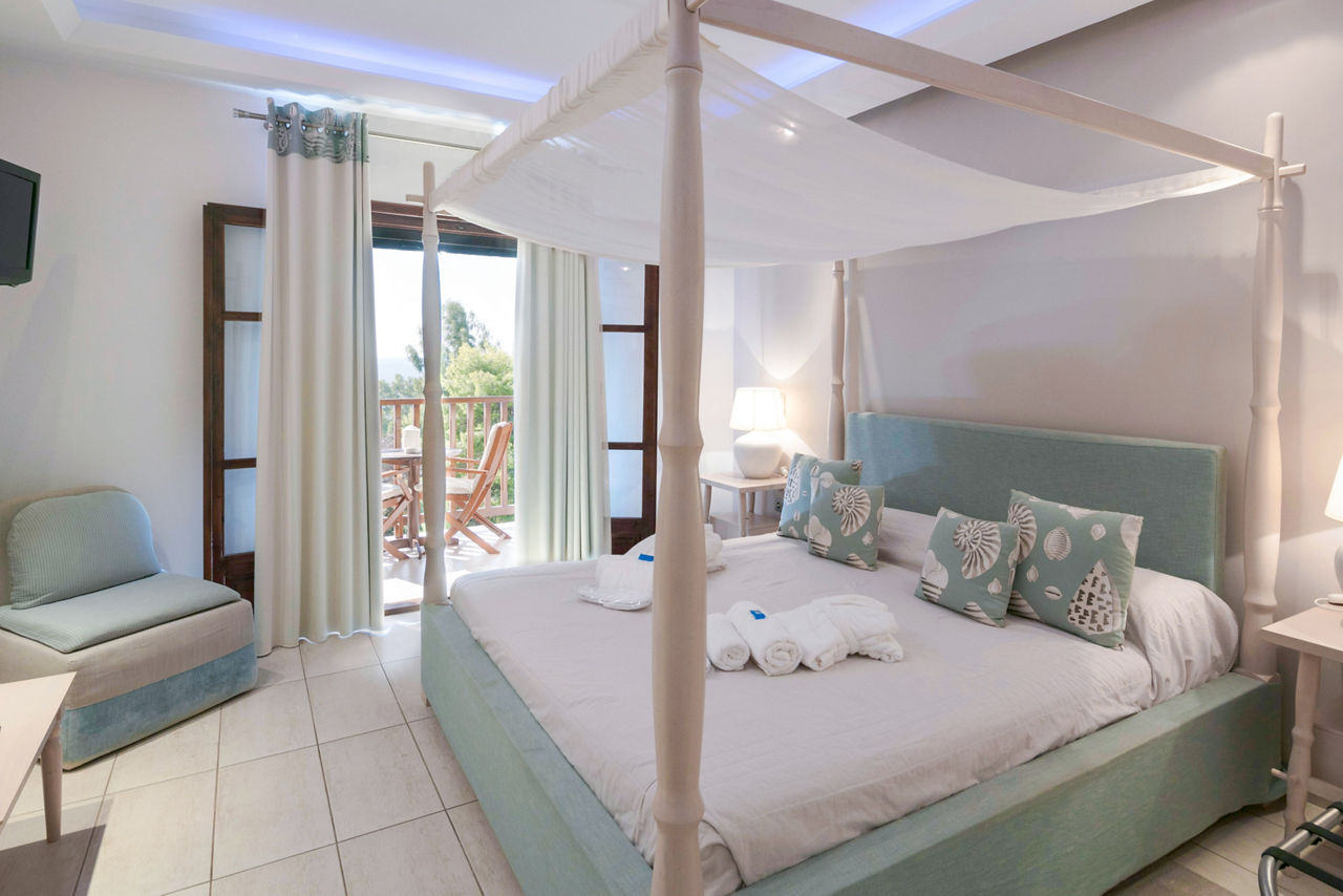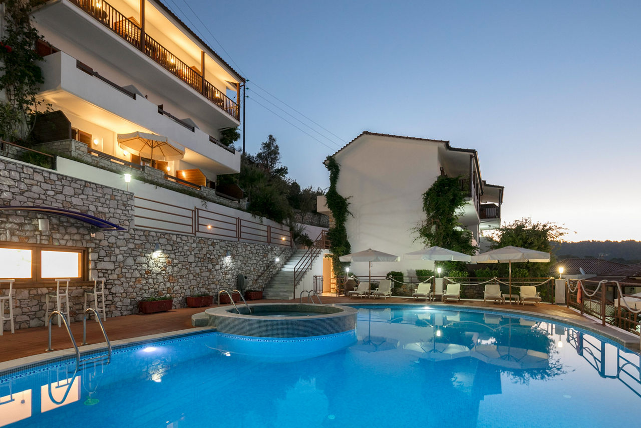This family-run hotel is located in a quiet hillside position and features a relaxing pool area with spectacular views. The comfortable rooms offer a tranquil environment and come complete with a range of amenities to ensure you can relax following a day of sightseeing in this beautiful area. A variety of bars and restaurants can be found close by and a beautiful, small beach just a short stroll away.Deluxe Double rooms sleep up to 2 adults and have bathroom containing a shower, air conditioning, hairdryer, bathrobe and slippers, flat screen television, fridge and balcony. Room upgrade options and Sole Use rooms are also available.