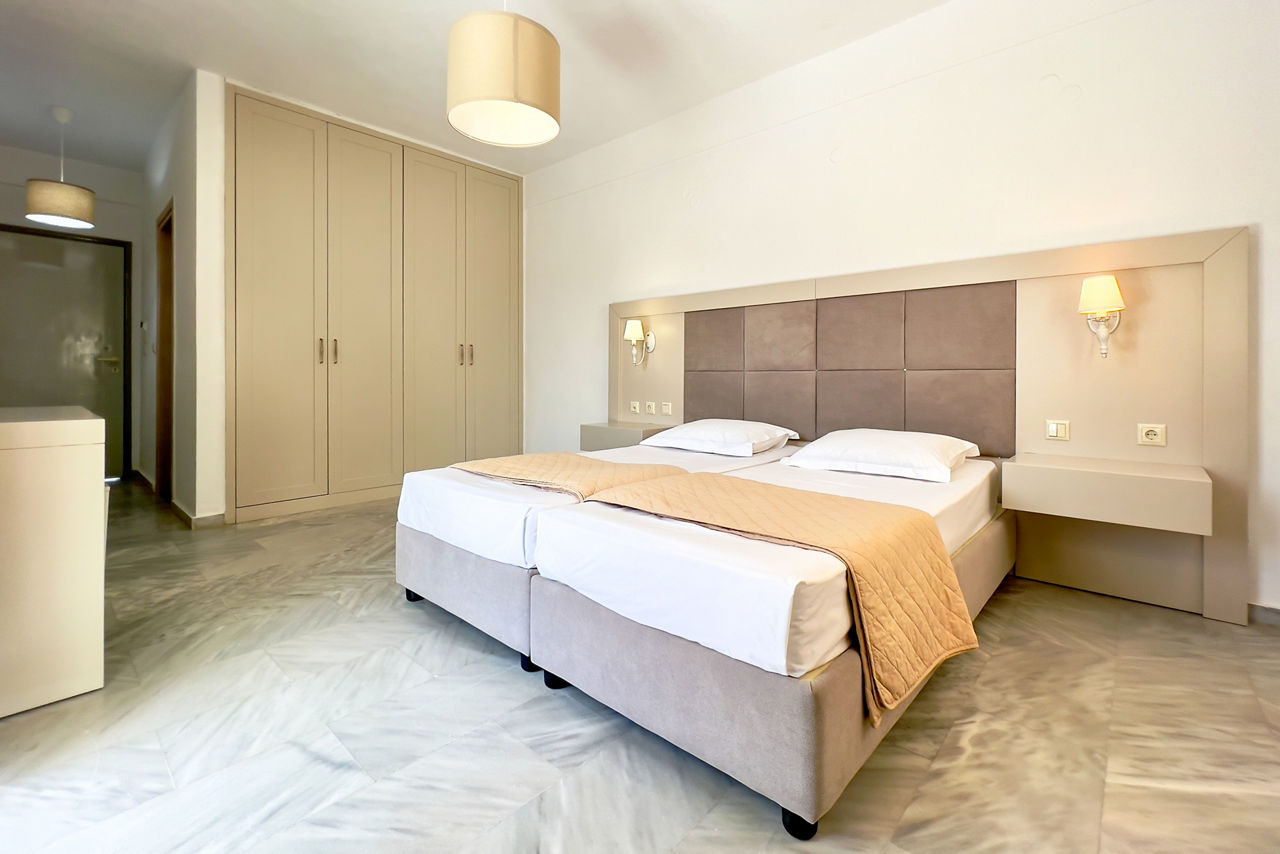 Twin rooms sleep up to 3 adults and have bathroom containing a shower, air conditioning * flat screen television and balcony or terrace. Single rooms are also available.