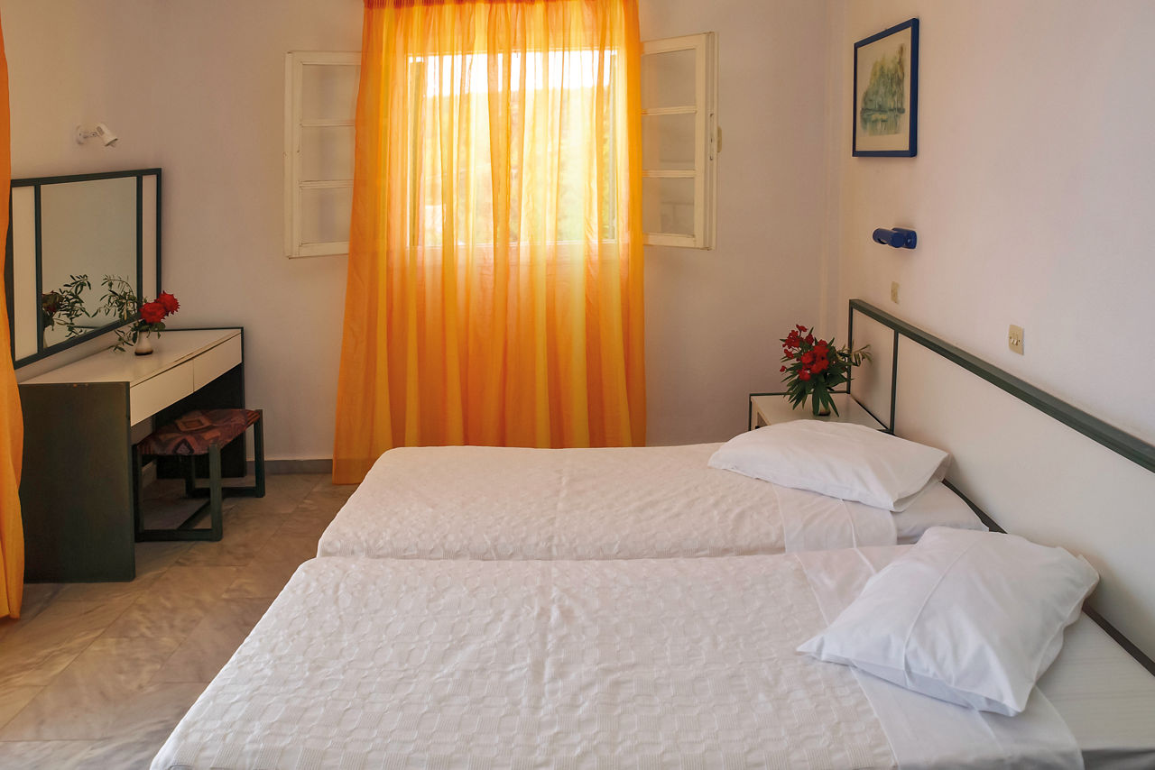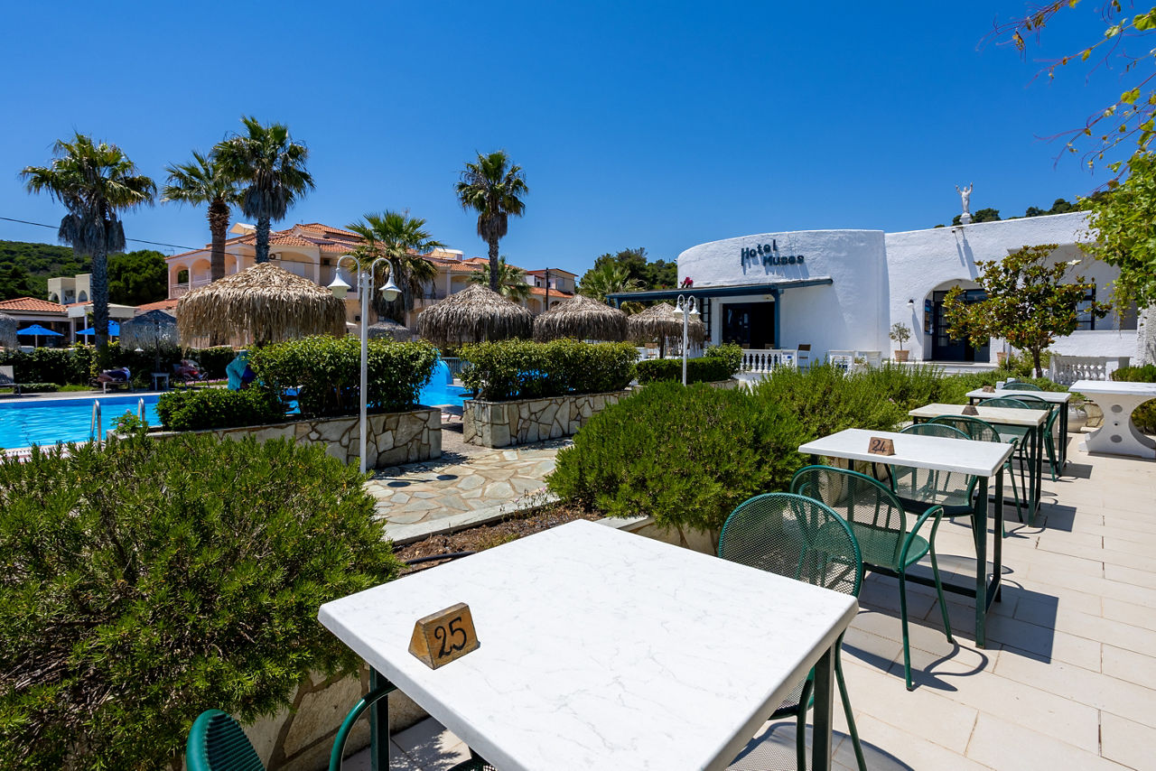 Surrounded by tranquil gardens and a short walk from the fabulous Koukounaries beach, the Hotel Muses is the place to be for a quiet Greek escape. Take a short stroll to the golden Koukounaries beach or find the perfect taverna for a beachside bite to eat. For fun days out, hop on the bus and you?ll be in Skiathos Town before you know it! Or relax by the poolside catching the rays. After fun-filled days, you?ll be able to tuck into a variety of Greek delicacies at the on-site restaurants and retreat to your comfortable rooms for some well-deserved rest.Twin rooms sleep up to 3 adults and have bathroom containing a shower, air conditioning * flat screen television and balcony or terrace. Single rooms are also available.