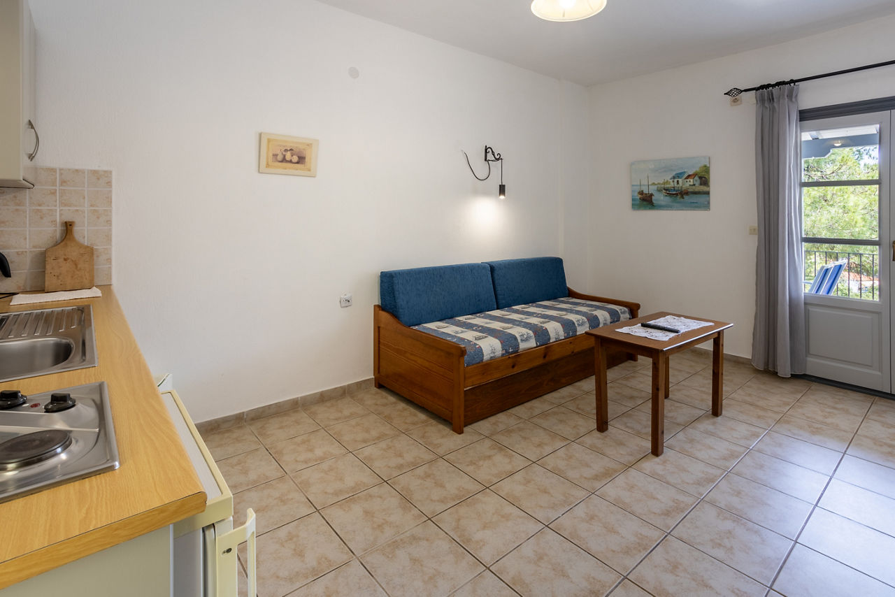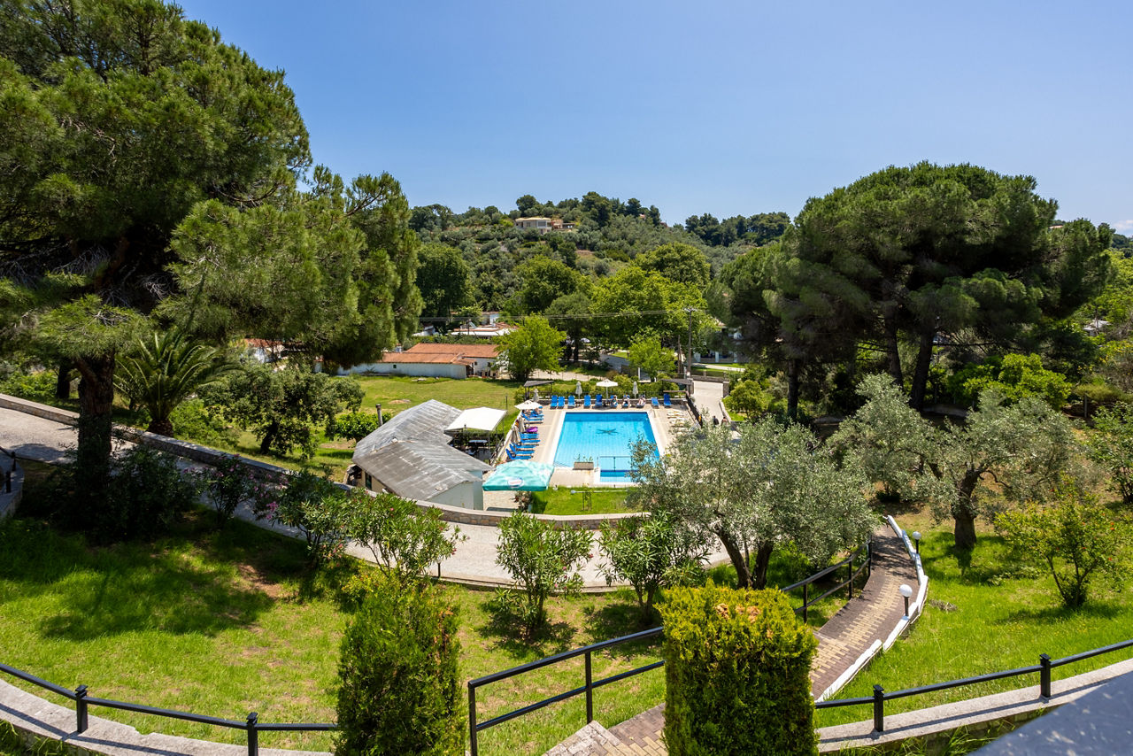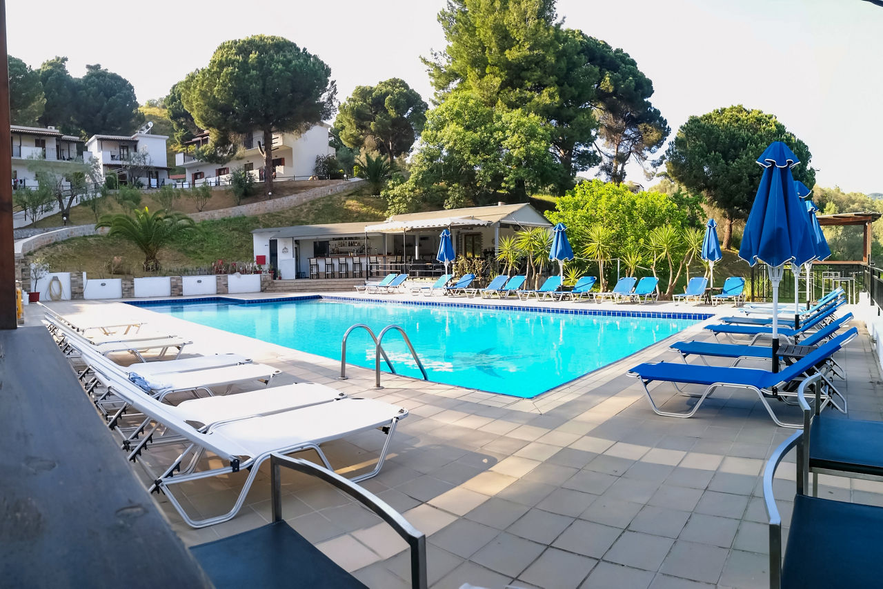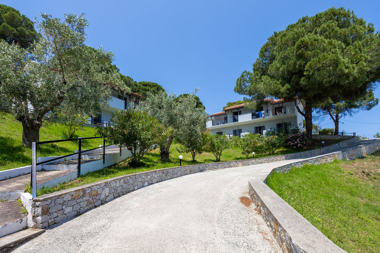 These apartments ooze traditional Greek charm in abundance, tucked away down a country lane with its dainty, whitewashed sugar cube houses and picturesque hillside setting. There's a good-sized pool on-site with a well-stocked bar surrounded by lush green pine trees. A short walk will bring you to Agia Parskevi's resort centre where a number of bars, restaurants and the golden sandy beach can be found.