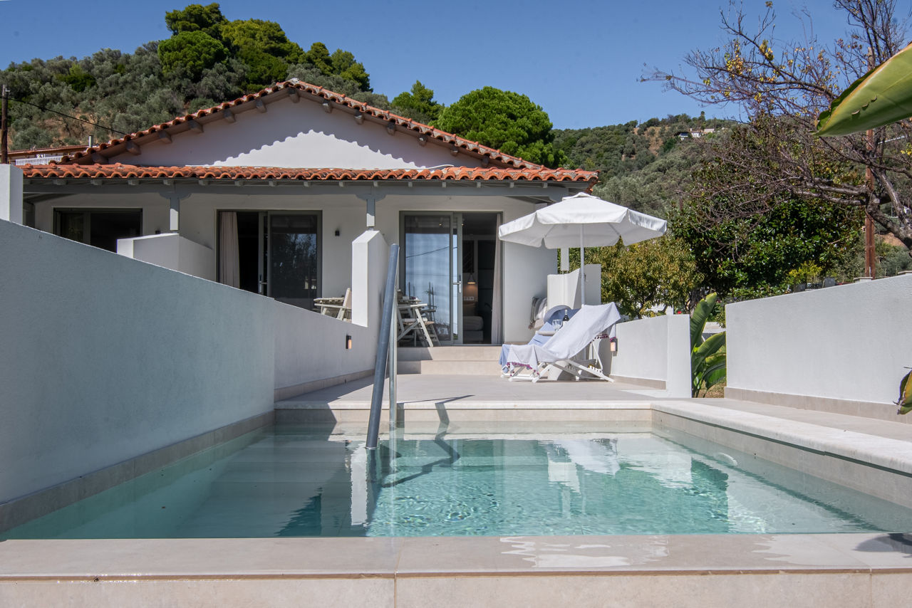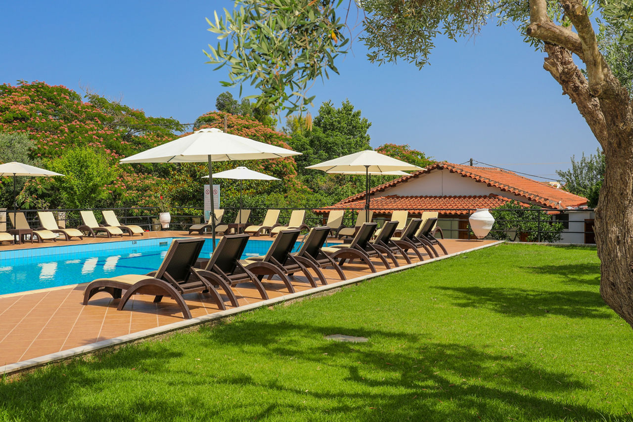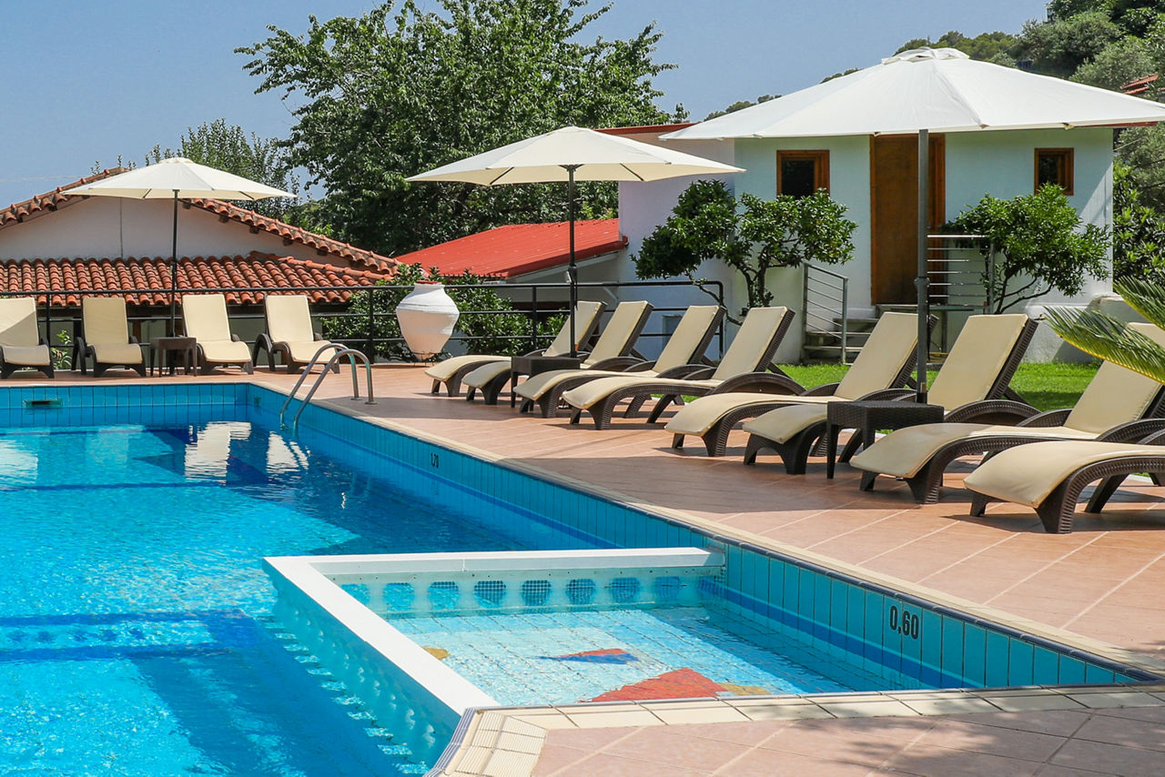 Hillside. 450m from Achladies beach and resort centre. 4km from Skiathos Town.Swimming Pools