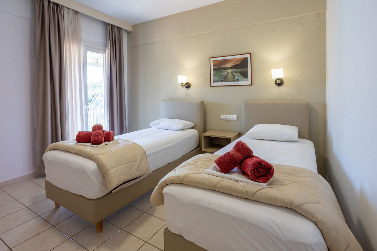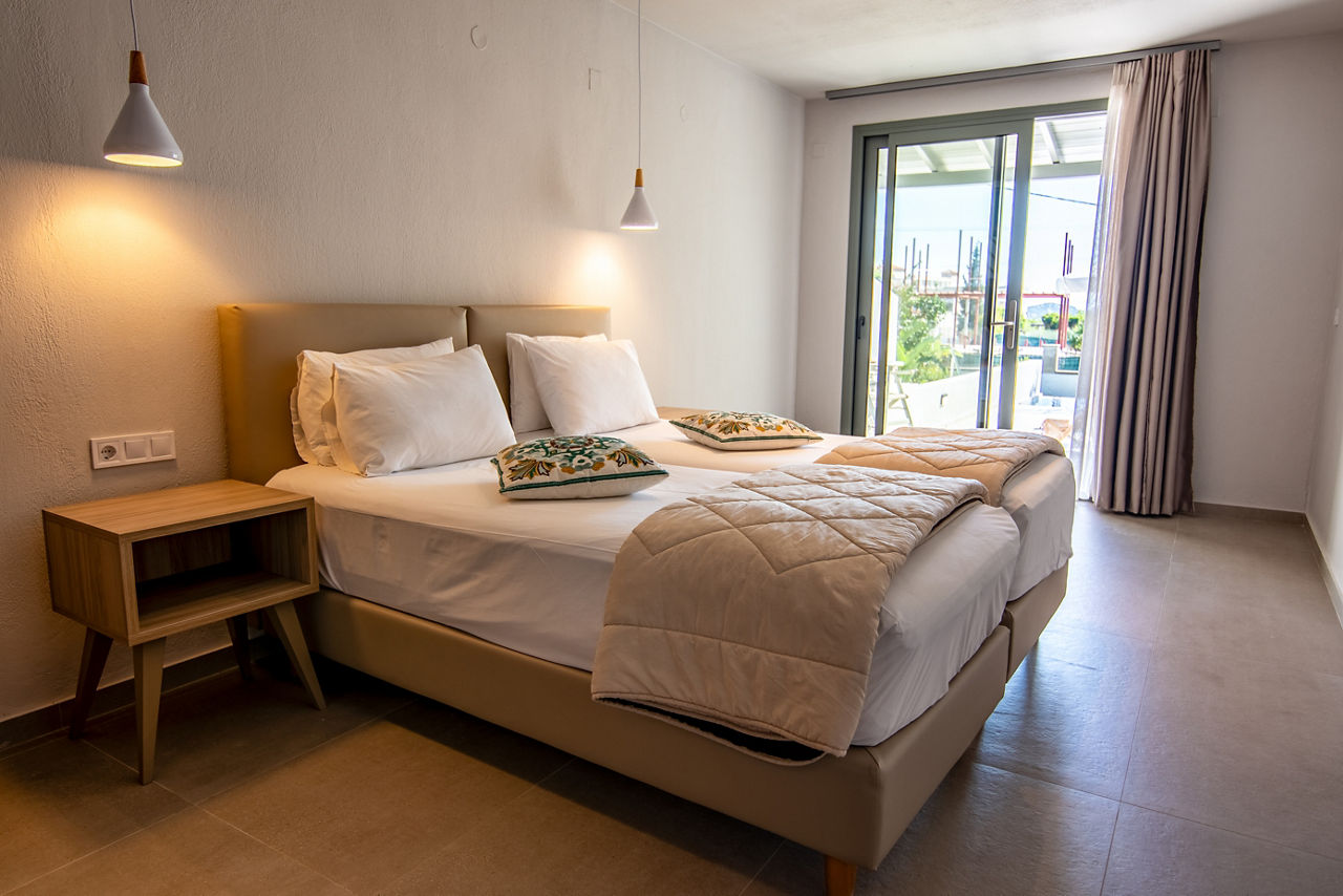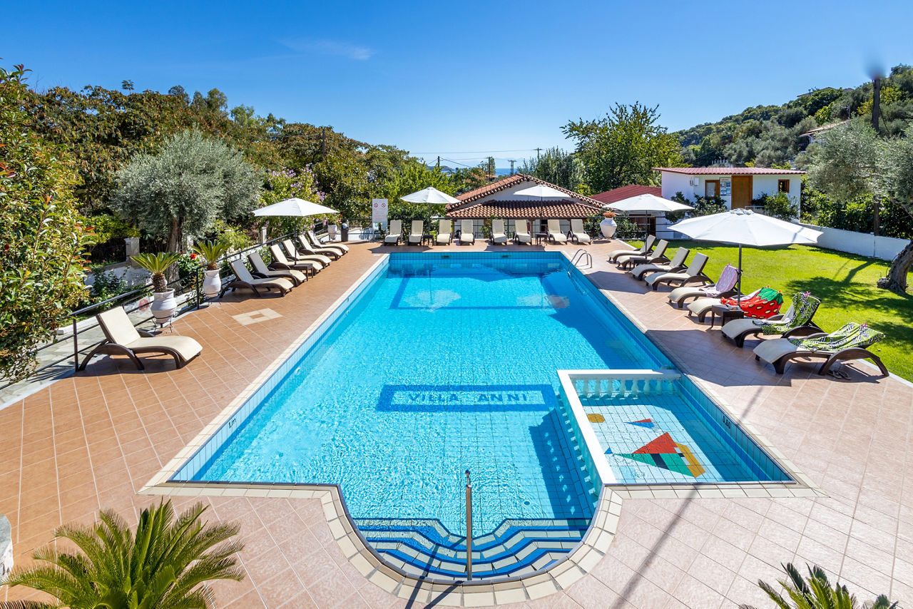Surrounded by lush green forest, Villa Anni is tucked away on a hillside overlooking the stunning bay of Achladies. There?s a quiet and cosy atmosphere around the relaxing pool area and Achladies beach with its turquoise waters and golden sands backed by tavernas is a short walk downhill. Couples looking to get away from it all will love this peaceful hillside retreat that offers excellent value for money.Studios sleep up to 2 adults and have bathroom containing a shower, air conditioning*, kitchenette and balcony or terrace. Triple studios sleeping up to 3 adults are also available.