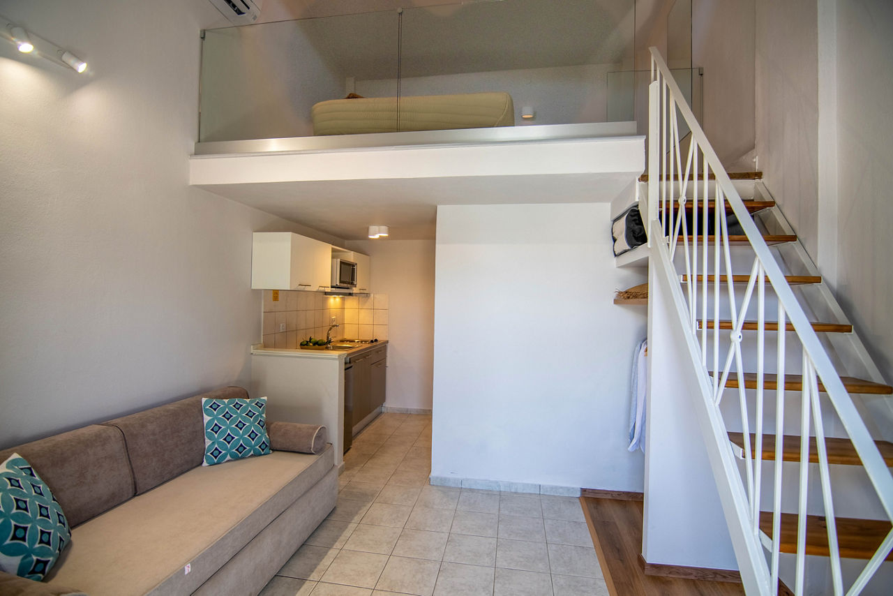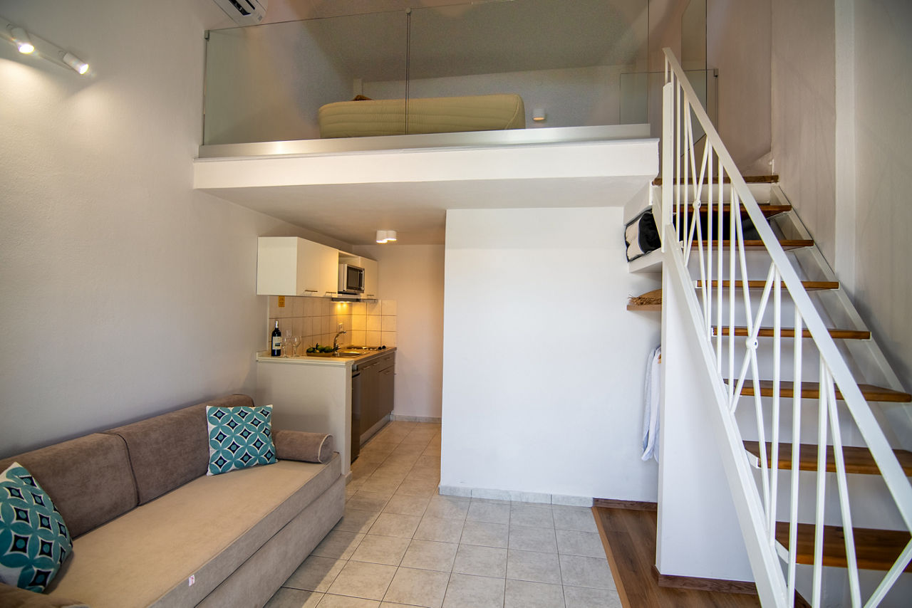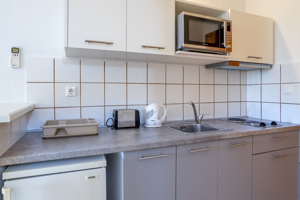 Studios sleep up to 2 adults and have bathroom containing a shower, air conditioning*, kitchenette and balcony or terrace. Triple studios sleeping up to 3 adults are also available.