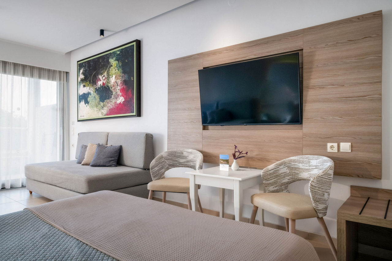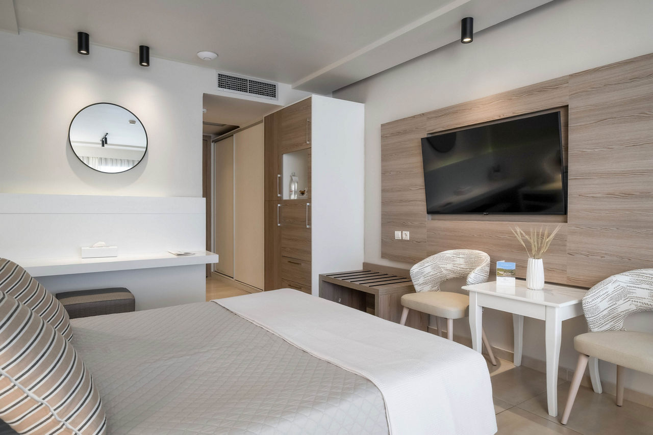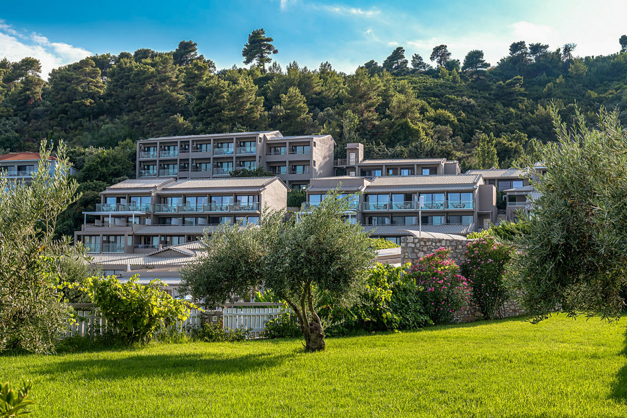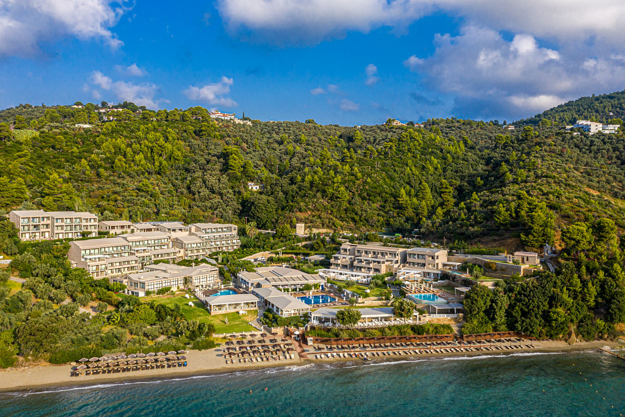 Offering all the amenities of a luxury beachfront resort, the Kassandra Bay Resort & Spa is backed by rolling green forest and offers sweeping sea views. Rooms are beautifully decorated, combining modern elegance with a fresh, contemporary style in light, neutral tones. There?s a laid-back atmosphere around the pool areas, surrounded by beautiful terraces and lush, well-maintained gardens that lead down to the golden sandy beach, where a water taxi provides a convenient connection to the old port of Skiathos. The Kassandra Bay Resort & Spa will appeal to families and couples looking for a relaxed beach break in a setting of upgraded comfort and luxury.