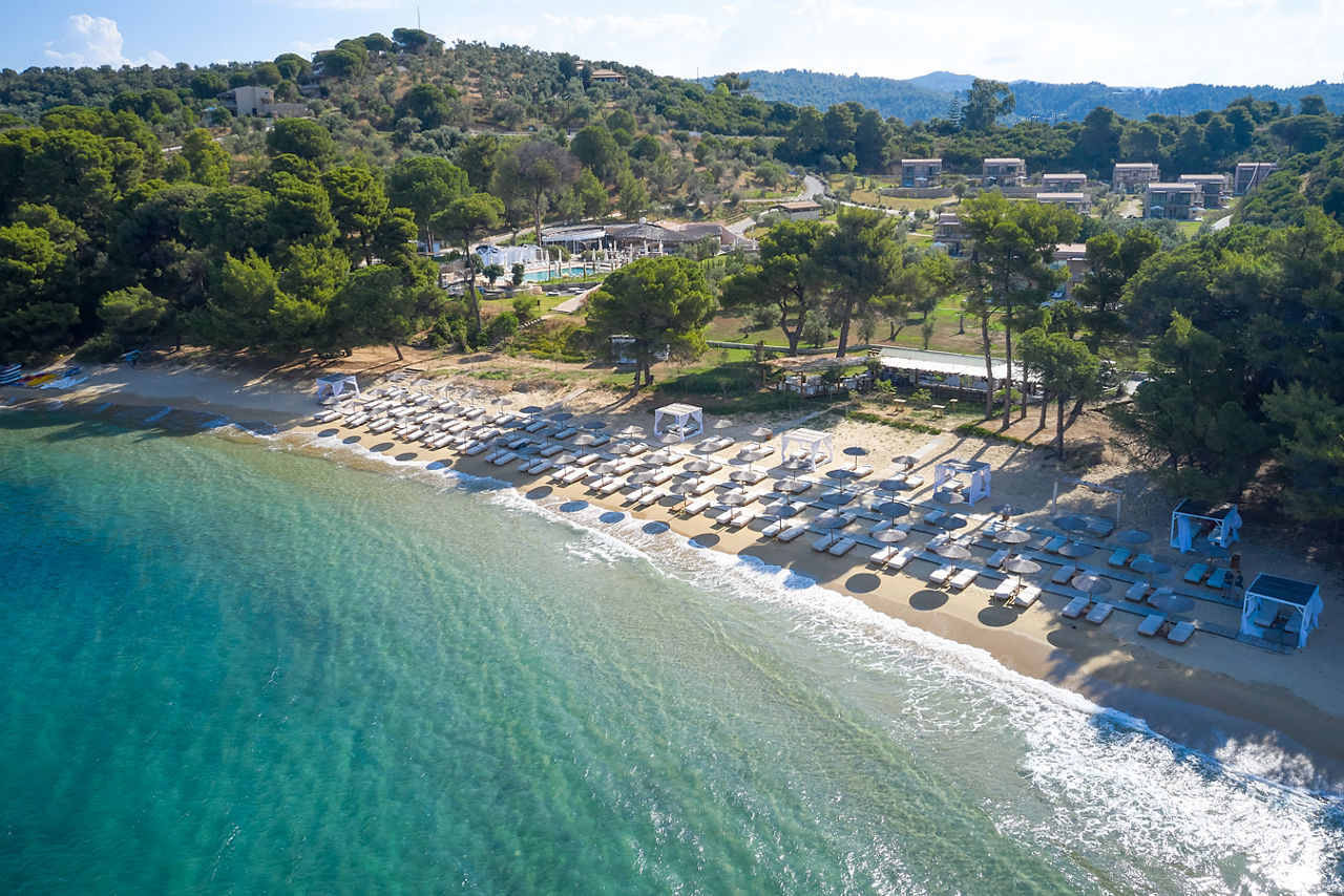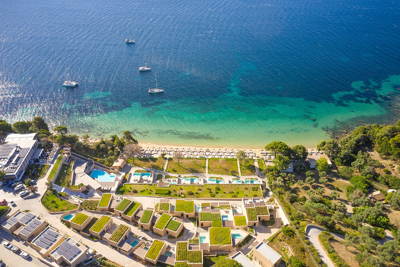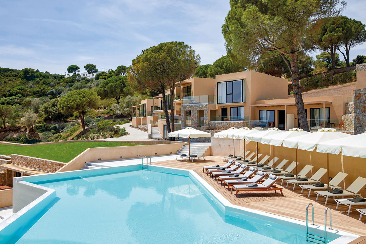 Located on the south-western tip of Skiathos, Elivi Resort is a modern and luxurious property set amongst stunning pine forests, offering access to several beautiful beachfront areas within the complex. The spacious resort is arranged across three areas - Xenia, Nest and Grace - all thoughtfully spread among gardens and natural landscapes, creating a strong sense of space and a calm, nature-filled atmosphere. Guests can enjoy a wide choice of restaurants and bars alongside stylish facilities, contemporary accommodation and attentive service, making this a peaceful yet well-rounded resort experience.