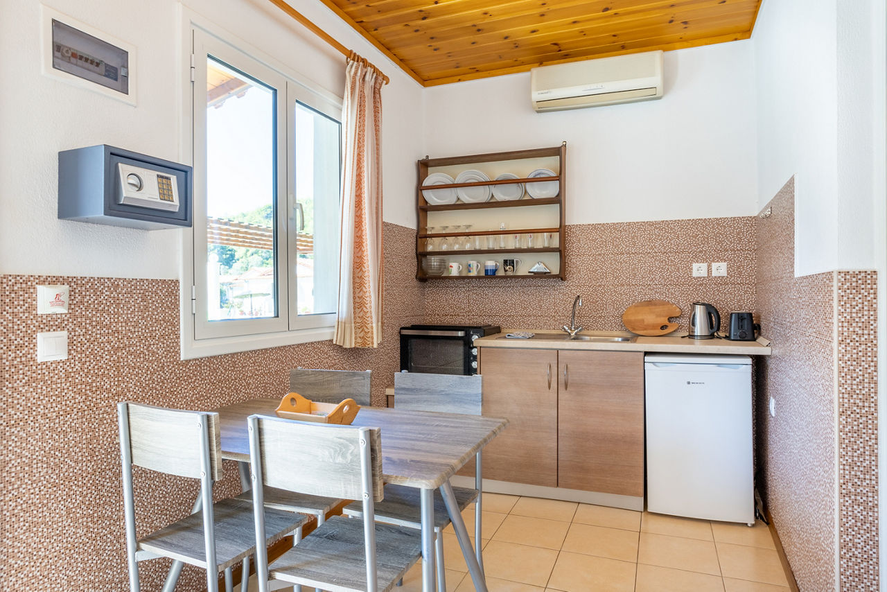 Providing a great base for a relaxing break in picturesque Skiathos, Thanos Studios & Apartments offers traditional Greek charm. Surrounded by rolling fields and lush green forestry, there?s a pool on-site and the Sunrise Taverna is a big hit, serving up Greek favourites like souvlaki and moussaka. With a selection of tavernas and shops close by, this authentic Greek gem is the perfect choice for guests seeking to unwind.Double Standard Studio sleep up to 2 adults and have bathroom containing bath or shower, air conditioning*, television and balcony or terrace.