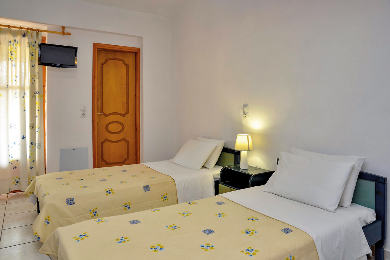 Searching for a great-value base that has everything you need to self-cater? Look no further than these charming, family-run apartments on the sun-soaked south coast of Skiathos. Spend your days lazing on a lounger by the pool while the pool bar is on hand for drinks and snacks. Don?t miss the weekly barbecue night, when you can sample a whole host of delicious Greek delights! Fancy exploring the area? Simply hop on the local bus into Skiathos Town and you can see what the island?s capital is like. Day or night, it?s a stunning spot!Standard Double studios sleep 2 adults and have bathroom, air conditioning*, fridge, kettle, cooking ring and balcony or terrace. Standard Triple studios sleeping 3 adults, Maisonettes sleeping 4 adults and Two Bedroom apartments sleeping 4 adults are also available.