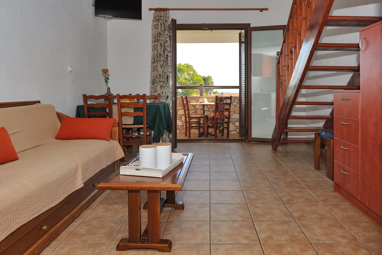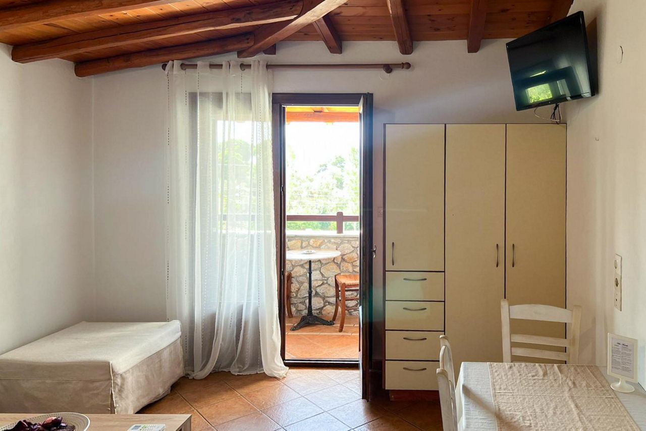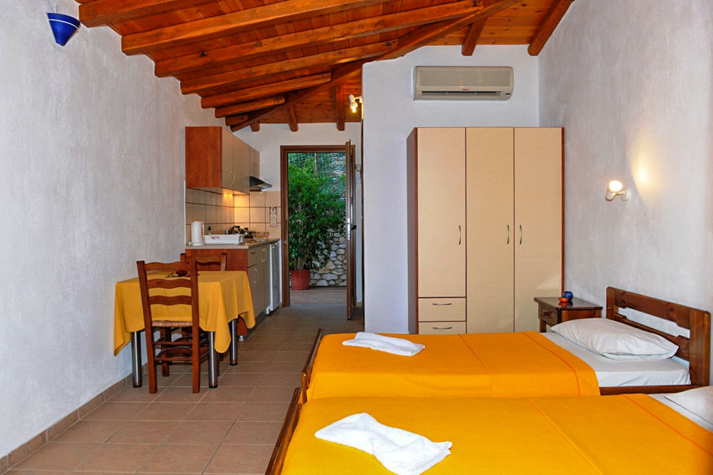 Villa Maraki is the perfect base for exploring the island, set in a picturesque, traditionally Greek stone-built property perched on a lush green hillside. With a charming pool area and a pool bar, it's an ideal spot to relax after a day of adventure. The golden, biscuit-coloured beach is just a short walk away, offering easy access to the coast. The spacious studios, apartments, and maisonettes are fully equipped for a self-catering stay, providing all the comforts you need while discovering the beauty of the island.Studios sleep up to 2 adults and have bathroom containing a shower, air conditioning, hairdryer, television, fridge, kettle, double cooking rings and balcony. One Bedroom apartments sleeping up to 4 adults and Maisonettes sleeping up to 4 adults are also available.