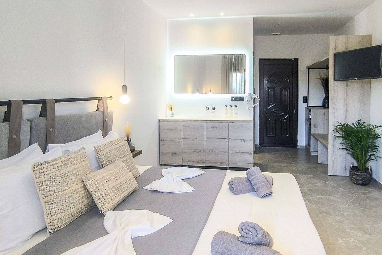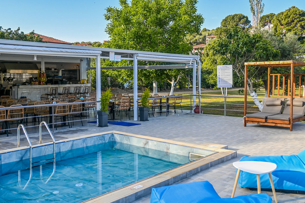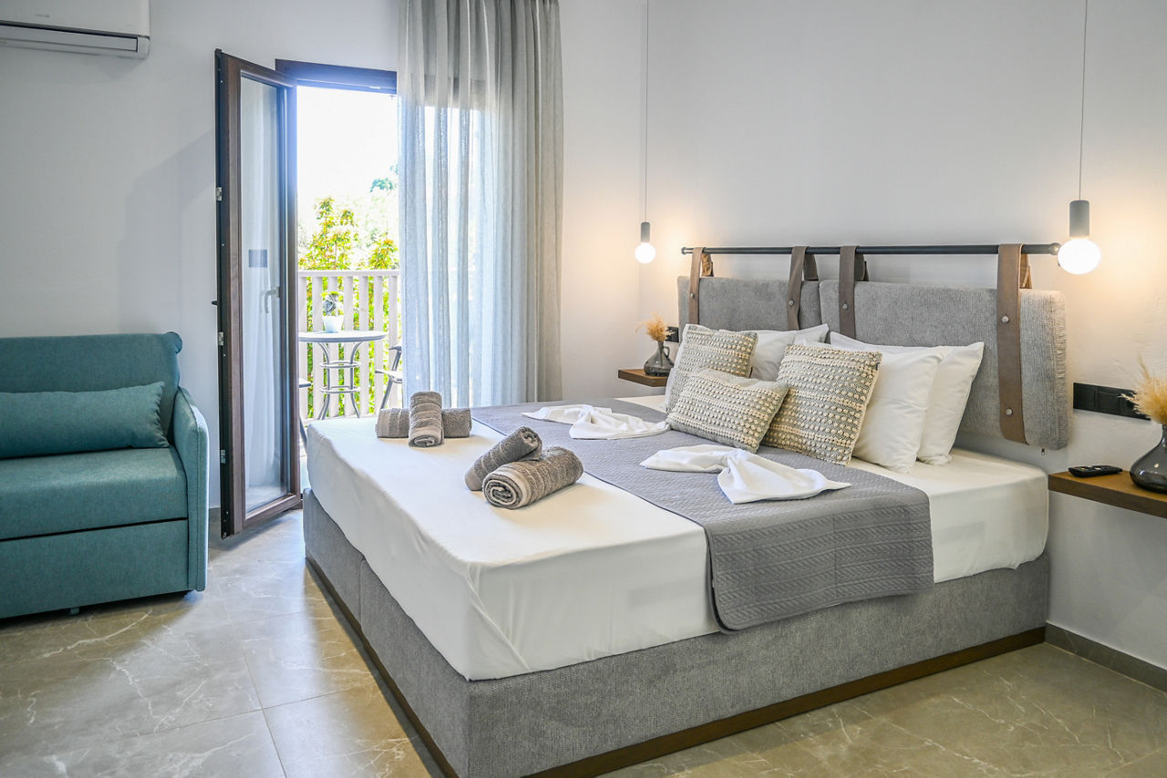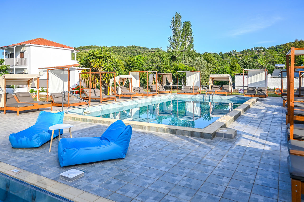 Looking for a fab base for exploring Troulos Bay and beyond? Set amongst lush green gardens, comfortable and modern rooms will welcome you at Giabeos Skiathos Island. Boasting a spacious pool area with plenty of sunbeds for relaxing in the warm Greek sun. The property is close to charming local tavernas and bars. An ideal base for couples, families, and friends looking for a relaxing stay.