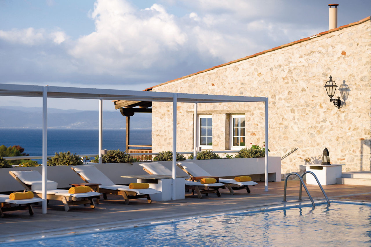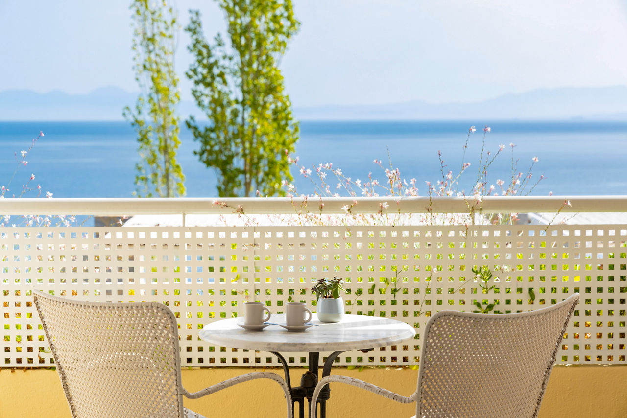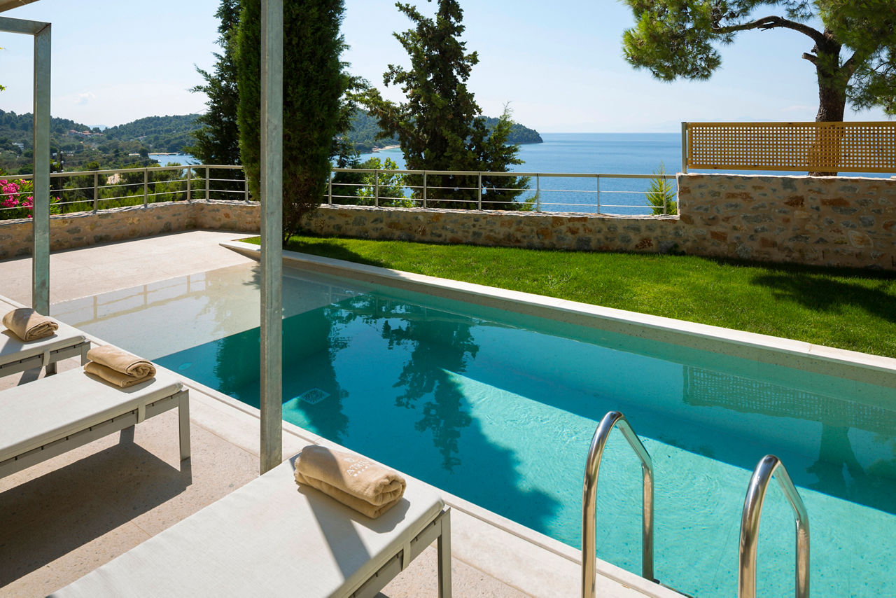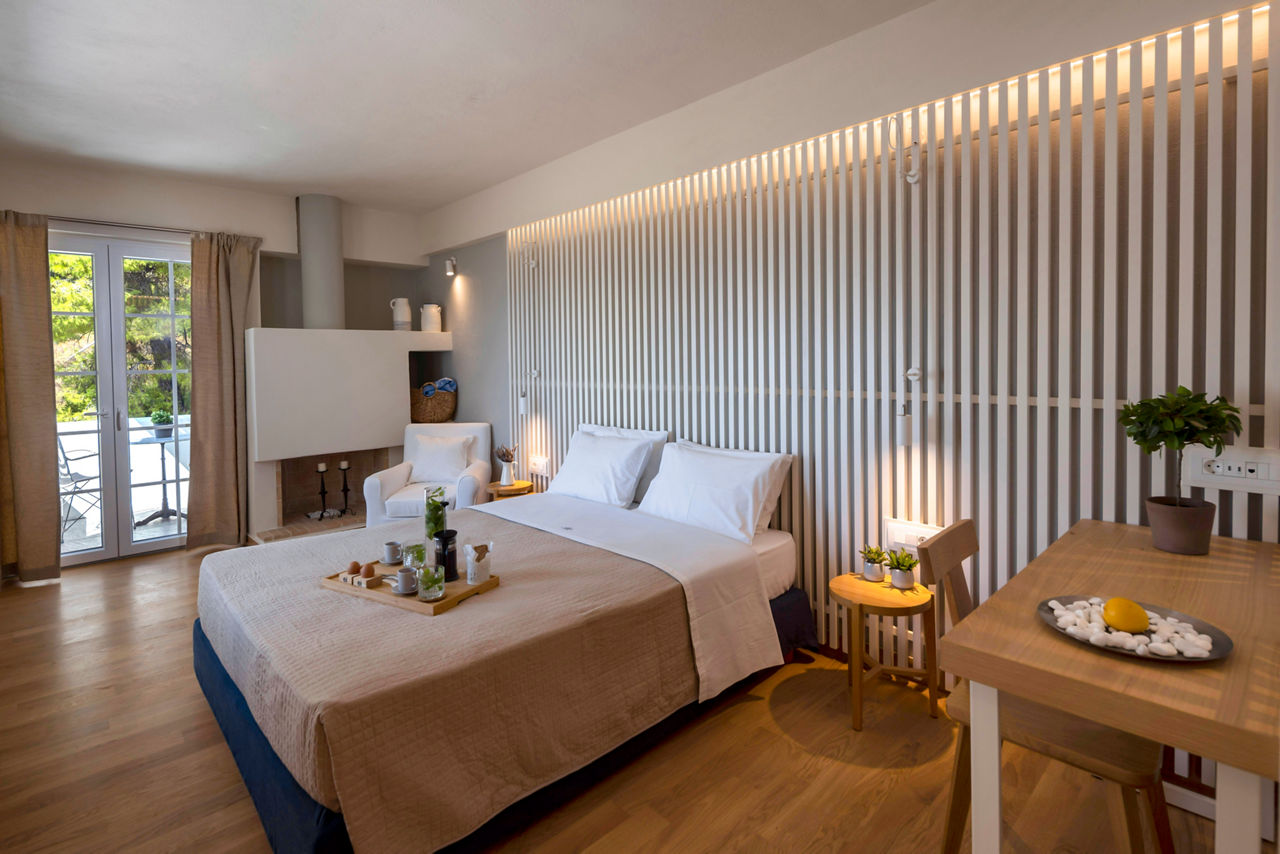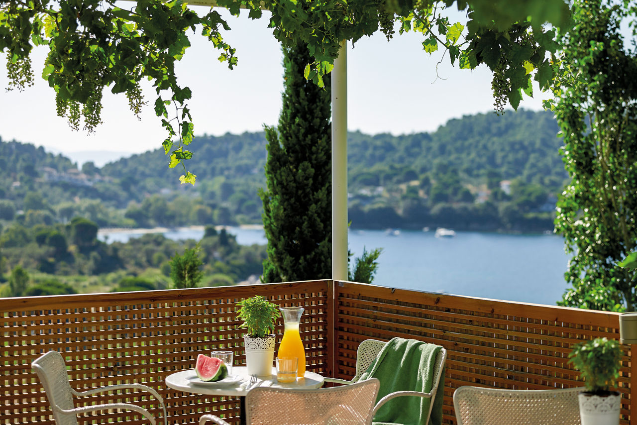Sensational sea views are the order of the day at this idyllic Skiathos hotel. The design was influenced by a traditional Greek monastery and it was built using local stone ? it doesn?t get much more charming than that! Unwind on the stunning sun terrace before enjoying lunch in the vine-covered, al-fresco restaurant. It?s true bliss! Within minutes, from this hillside spot, you can stroll down to Agia Paraskevi Beach, which was made for lazy days. You?ll find a great range of restaurants in the area. Pick up a tasty gyros for lunch then savour a meze feast for dinner. Foodies, you?ll be in your element!Deluxe Double rooms with Sea View sleep 2 adults and have bathroom containing a bath with shower attachment, air conditioning, fridge, flat screen television and balcony. Junior suites sleeping up to 3 adults are also available.