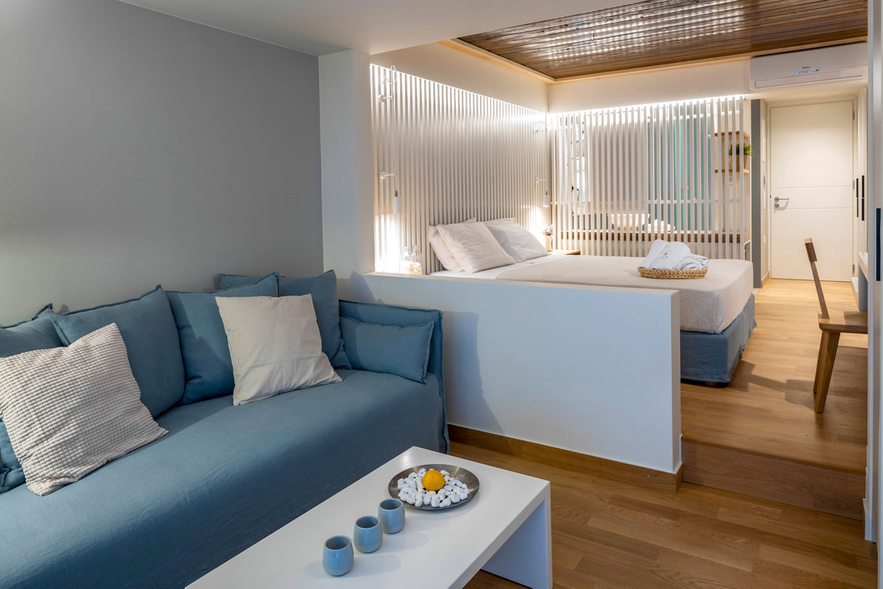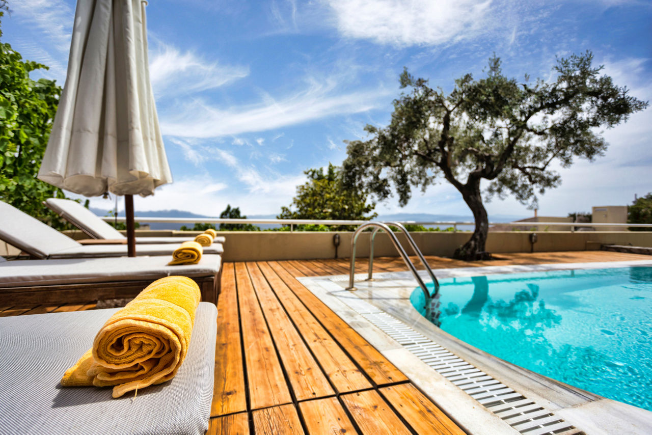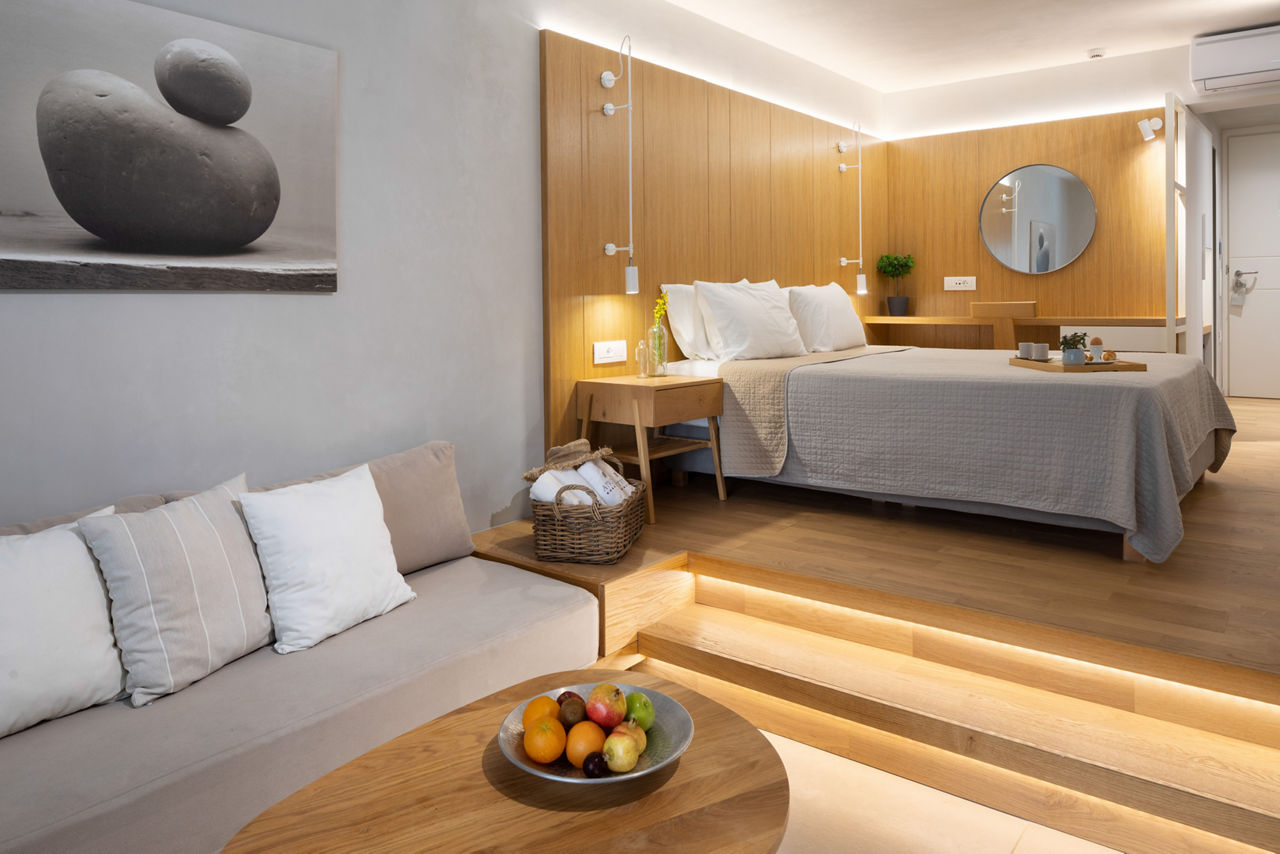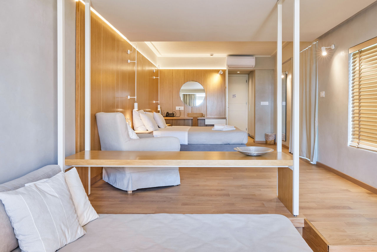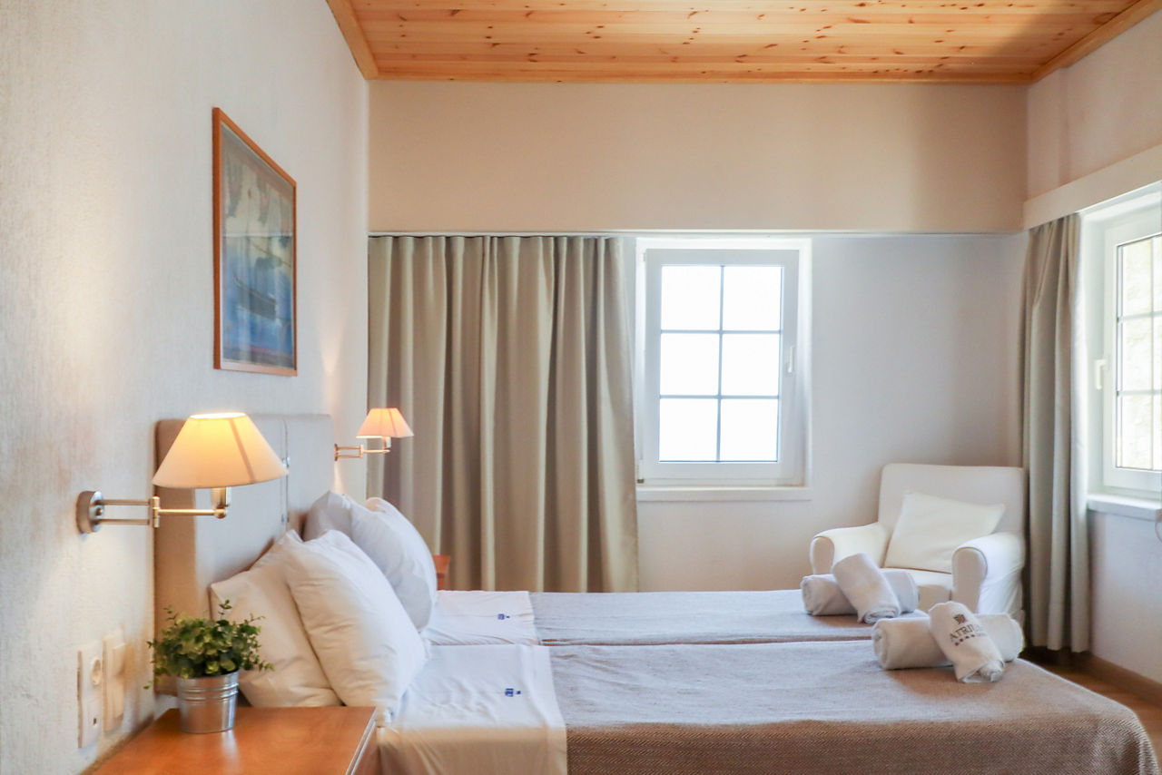Sensational sea views are the order of the day at this idyllic Skiathos hotel. The design was influenced by a traditional Greek monastery and it was built using local stone ? it doesn?t get much more charming than that! Unwind on the stunning sun terrace before enjoying lunch in the vine-covered, al-fresco restaurant. It?s true bliss! Within minutes, from this hillside spot, you can stroll down to Agia Paraskevi Beach, which was made for lazy days. You?ll find a great range of restaurants in the area. Pick up a tasty gyros for lunch then savour a meze feast for dinner. Foodies, you?ll be in your element!Deluxe Double rooms with Sea View sleep 2 adults and have bathroom containing a bath with shower attachment, air conditioning, fridge, flat screen television and balcony. Junior suites sleeping up to 3 adults are also available.