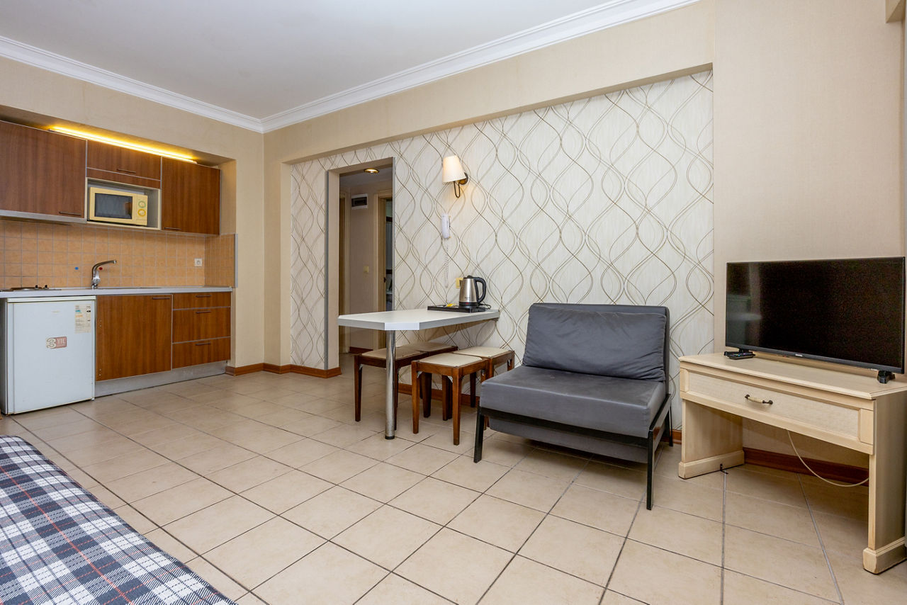 One bedroom apartments sleep up to 4 adults and have bathroom containing a bath with shower attachment, air conditioning (available May-Oct), hairdryer, television, fridge, kettle, microwave and a balcony or terrace. Room upgrade option are also available.