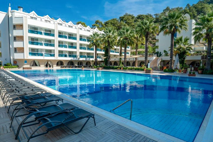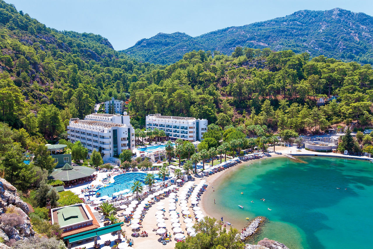 Turunc Hotel is located just outside the small resort of Turunc on a private picturesque bay with amazing views across the crystal clear blue waters. Featuring its own Blue Flag sand and pebble beach and surrounded by lush green pine-clad mountains and olive groves, this hotel has it all. There's a fun aquapark and children?s club for the little ones, a relaxing spa and wellness centre for those who want to be pampered plus great bars and restaurants. The spacious pool area and stunning private beach make the perfect spot for days spent soaking up the sun. Choose this resort for an unforgettable family holiday.Standard Double rooms sleep up to 3 adults and have bathroom containing a bath or shower, air conditioning, hairdryer, flat screen television, fridge, coffee making facilities, safety deposit box, free Wi0Fi and balcony. Standard Double rooms for Sole use, Family rooms sleeping up to 4 adults and 1 child and Duplex rooms sleeping up to 3 adults and 1 child are also available.