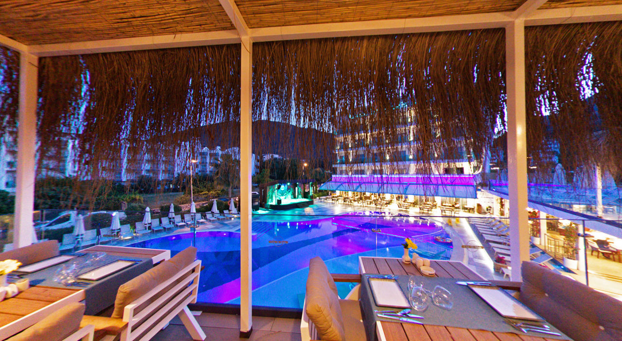 Buffet restaurant. A la carte restaurant*. Lobby bar. Pool bar. Patisserie.Entertainment
