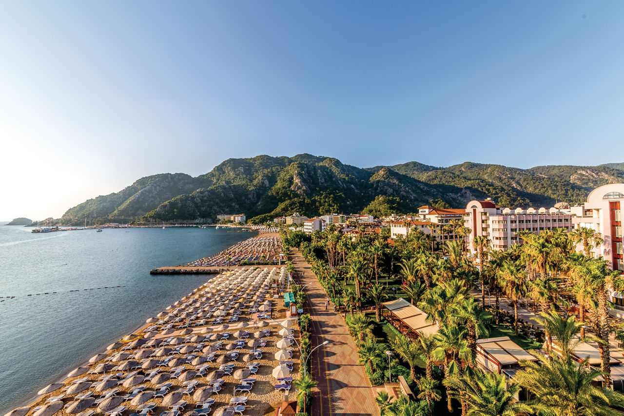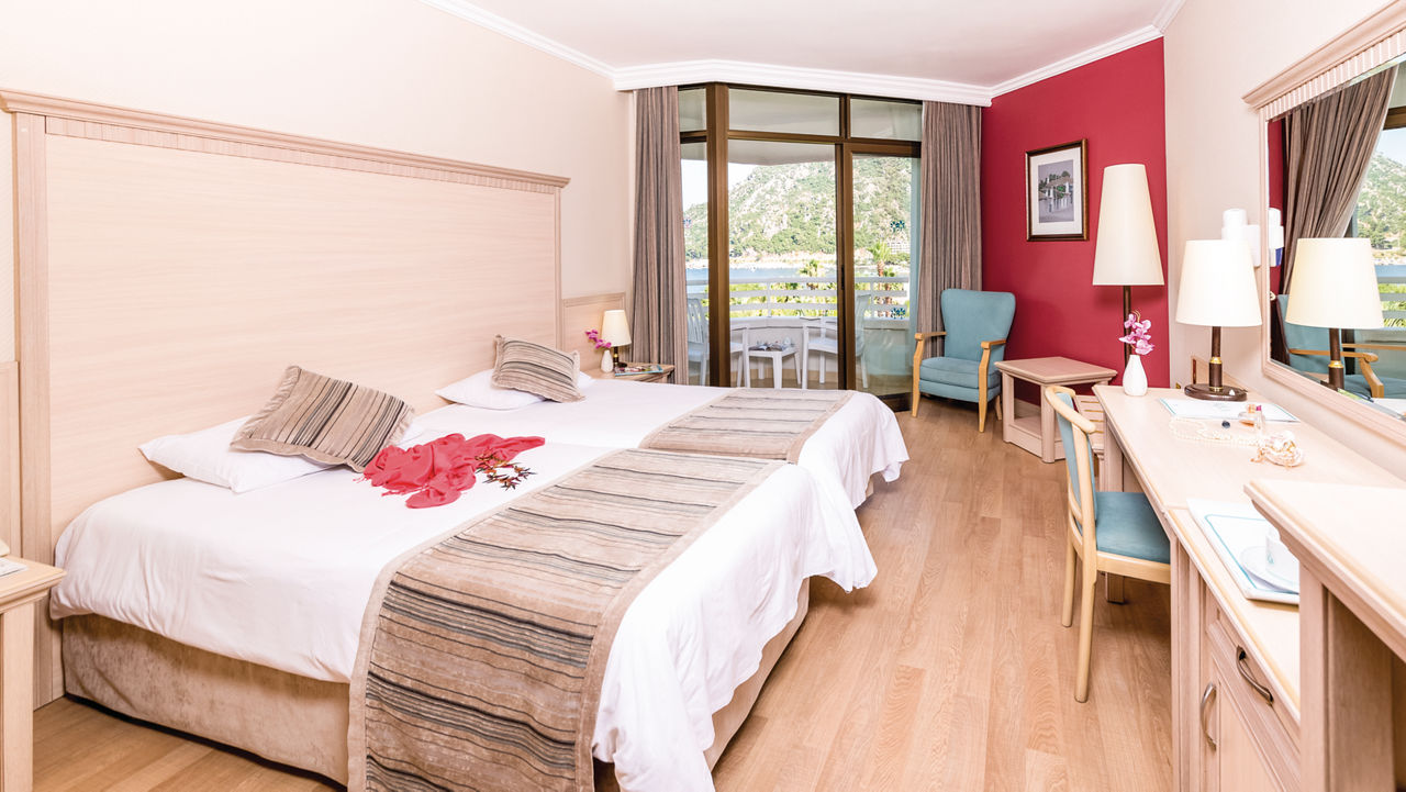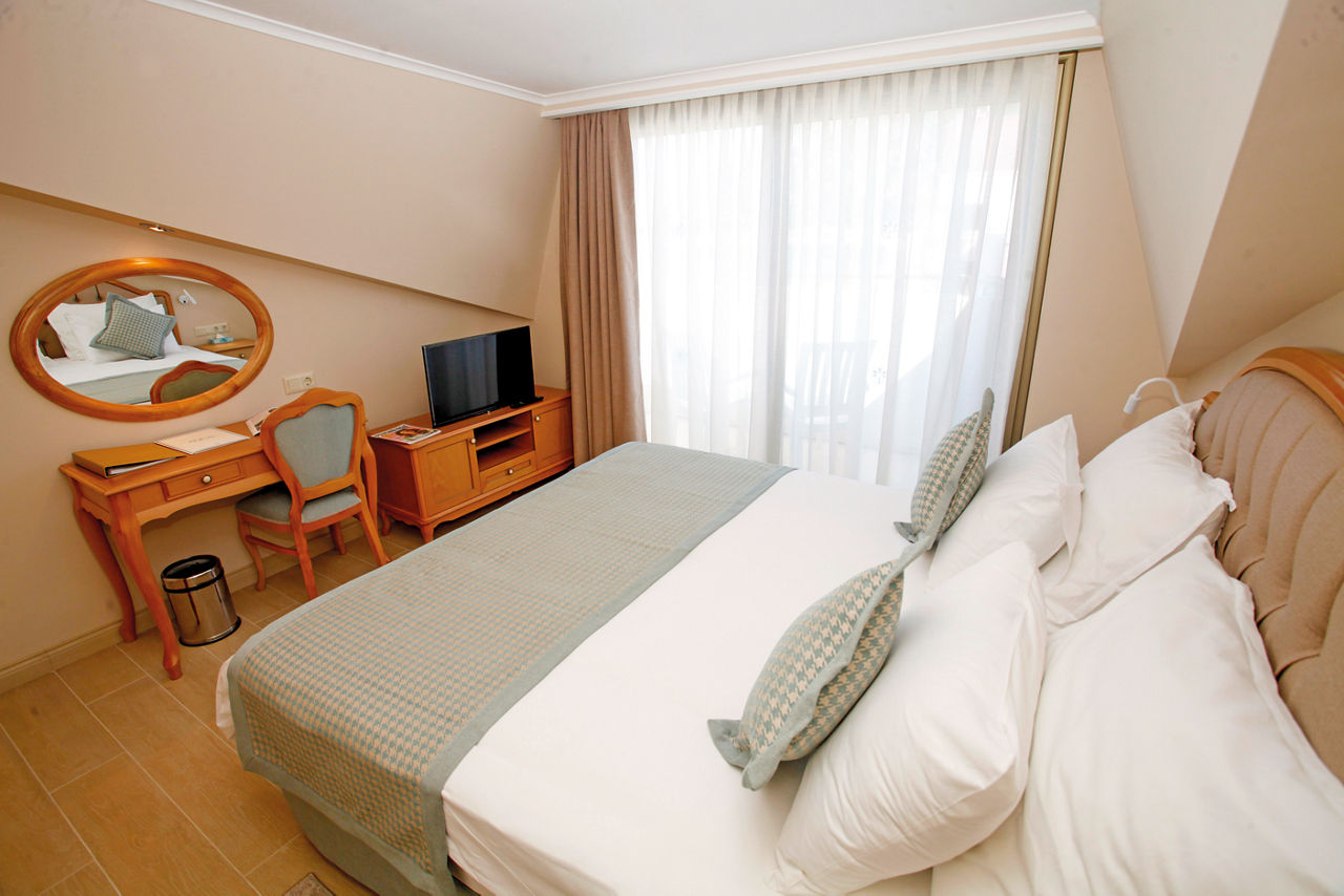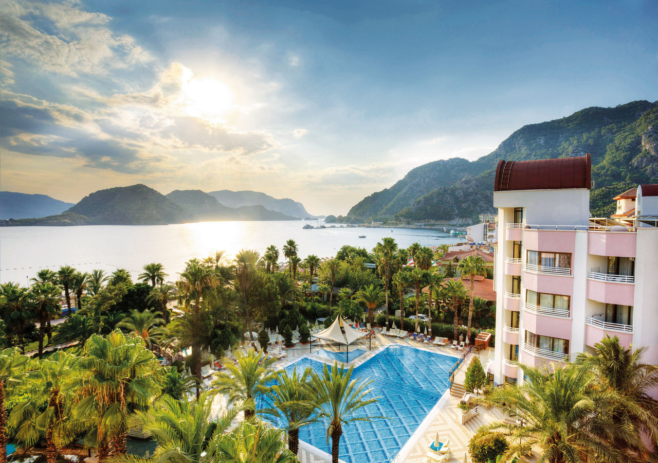 Hotel Aqua is an outstanding hotel with a picturesque setting. Set amongst tropical gardens overlooking Icmeler beach and the stunning turquoise sea, the views at this hotel are truly sublime. Guests will enjoy an excellent All Inclusive programme with a varied choice of restaurants and even a 24 hour bar! There's also a great spa and wellness centre where you can relax and be pampered. It's perfect for families and couples looking to be close to the beach and resort centre.Standard Double and Twin rooms sleep up to 2 adults and have a bathroom with shower, hairdryer, make up mirror, air conditioning, satellite TV, free Wi-Fi, mini-bar, tea and coffee making facilities and a balcony or terrace. Standard Double and Twin rooms for Sole Use are also available.