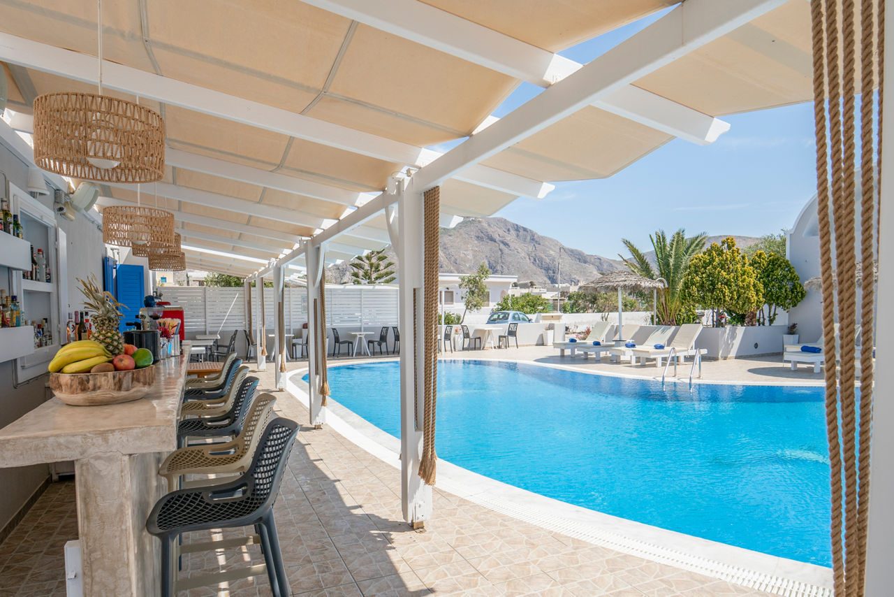 A striking pool area, traditional Cycladic architecture and a chilled-out atmosphere await at the Bella Santorini. The bright and spacious rooms are great for couples wanting a comfortable retreat, while the large outdoor pool and pool bar are ideal for lazy days under the Aegean sun. The black sand beach at Perivolos with a number of beach bars and restaurants is a short walk away.Studios sleep up to 2 adults and have bathroom containing a shower, air conditioning, hairdryer, television, fridge and terrace. Room upgrade options are also available.
