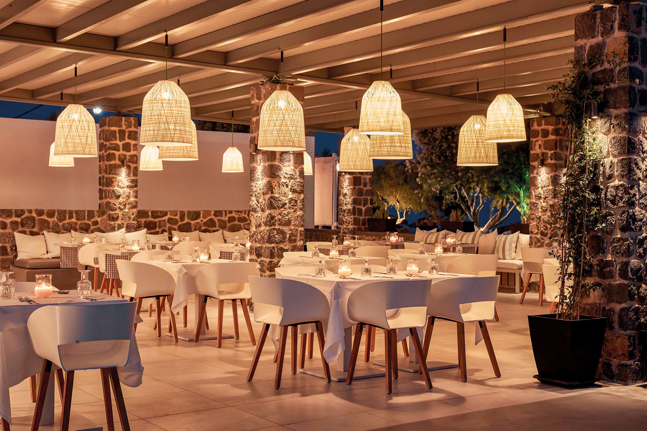 Beachfront. 750m from Perissa resort centre.Eating And Drinking