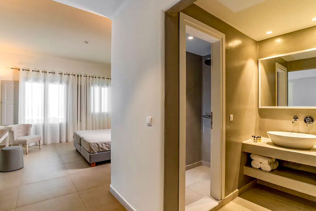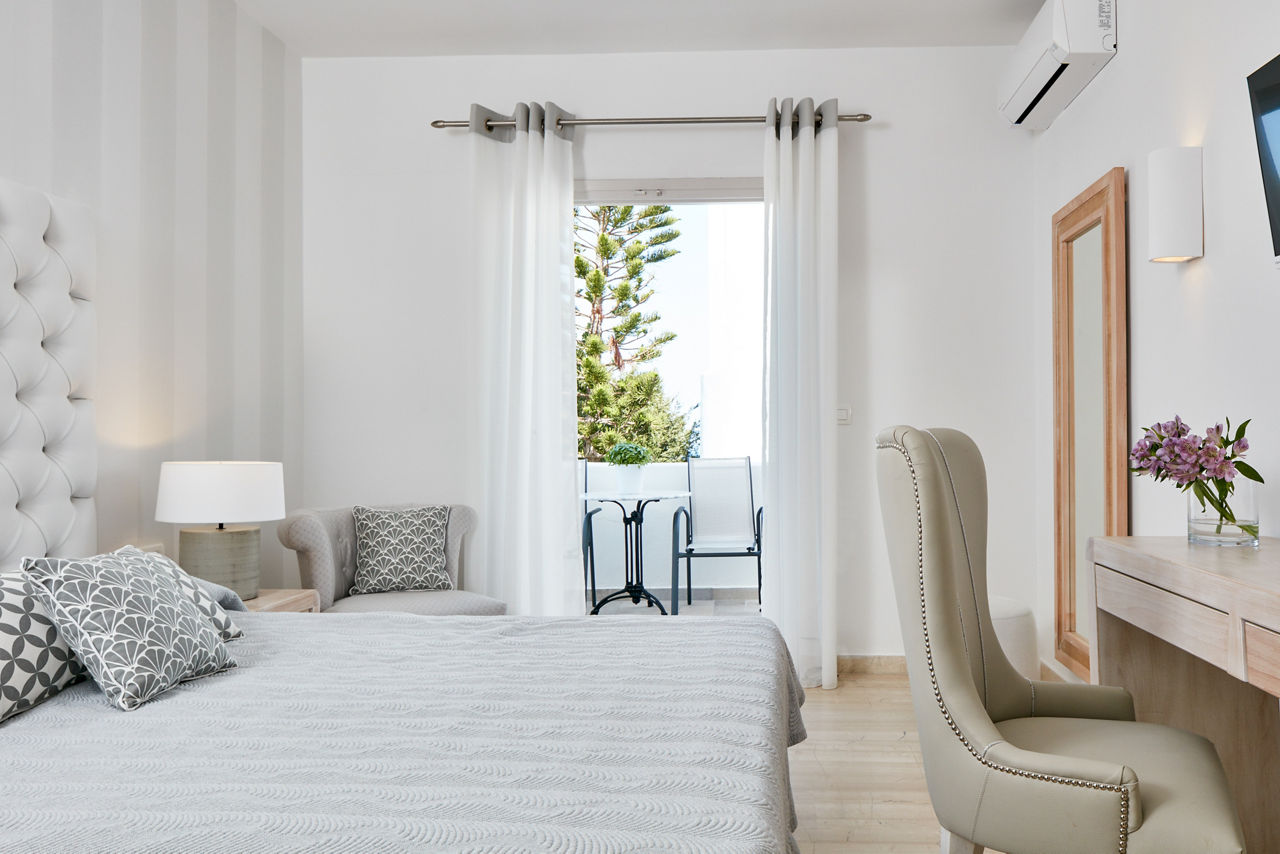 Step into the whitewashed Grecian world of Santorini Palace Hotel. Located just outside of Fira, here you can admire panoramic views of the Aegean, with shops, bars and restaurants just a short walk away. Enjoy bright, comfortable and airy rooms that overlook the hotel?s beautiful gardens or the sea ? an ideal spot for photo opportunities. Relax by the outdoor pool with a drink in hand from the bar and enjoy the tranquillity of a Santorini holiday. Boasting stylish décor, friendly service and breathtaking views, Santorini Palace Hotel is the perfect choice for those wanting to experience the enchantment of Santorini.Double rooms sleep up to 4 adults and have bathroom containing a bath or shower, air conditioning, hairdryer, television and balcony. Room upgrade options are also available.