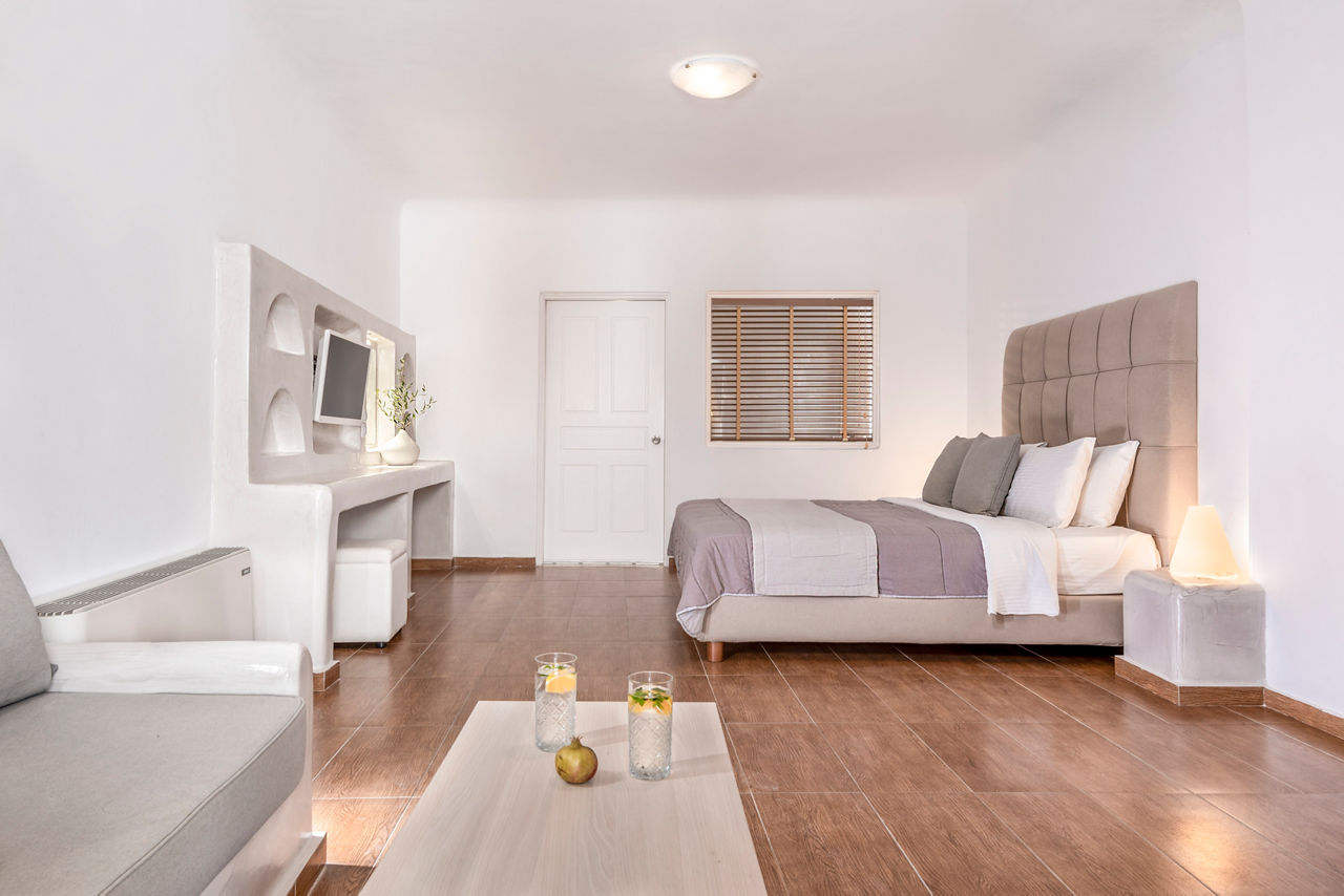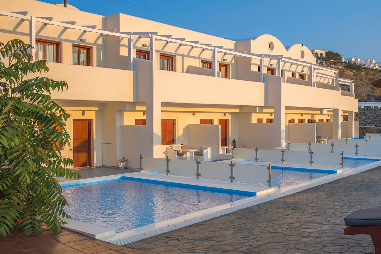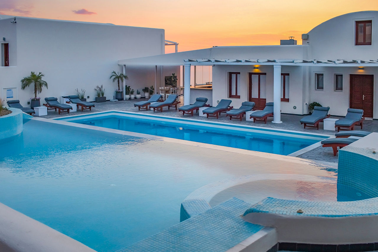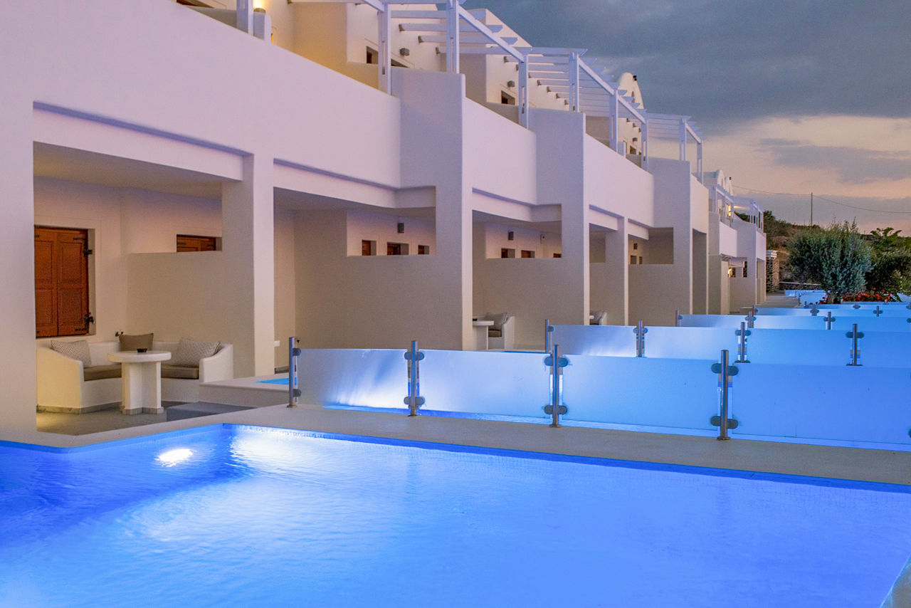 Nestled into the hillside, the Splendour Resort is great for couples and offers breathtaking views across the countryside and the east of Santorini. Spacious rooms and suites are decorated in neutral tones, offering a comfortable place to stay and some suites even come with private outdoor pools. Ideally positioned for exploring, a short walk from the hotel will bring you into Firostefani resort centre with its many tavernas and shops.
