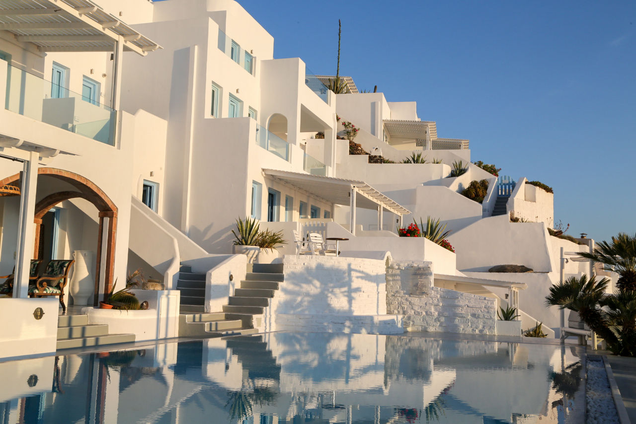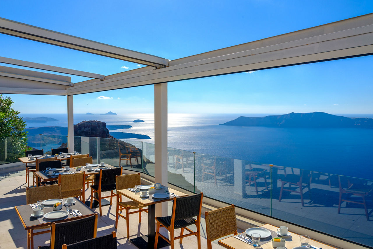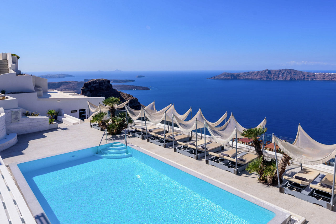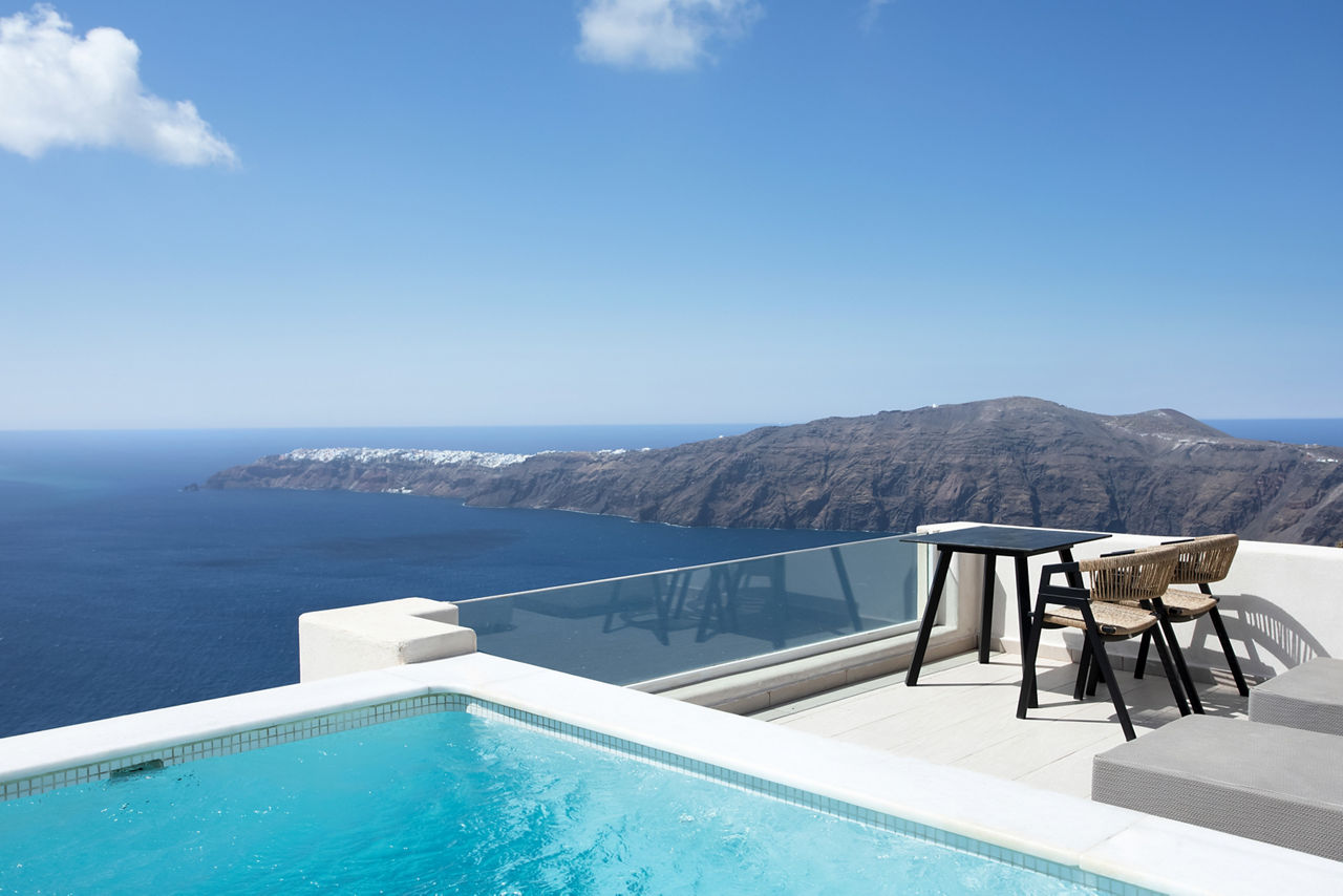 Perched on the breathtaking cliffs of Imerovigli, you?ll find Andromeda Villas. From the moment you step inside, you?ll find nods to the stunning beauty of the island, with classic sugar-cube buildings housing neutral and blue tones, which perfectly complement each other. Panoramic views of the infamous Santorini caldera can be enjoyed from both the pool and the restaurant, and the views even extend to some of the rooms. The location is pretty impressive too, with Imerovigli close by and some of the island?s attractions in reach. Whether your days are spent exploring, or simply enjoying the beautiful views from the comfort of a sunlounger, Andromeda Villas is a great place to do it from.