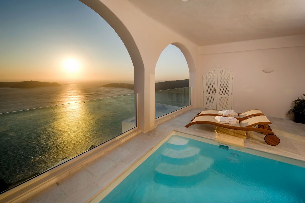 Nestled in the cliffside village of Imerovigli, Gold Suites offers a calming retreat in the heart of Santorini. Renowned for its sensational views of the caldera, this boutique property combines elegance with traditional Cycladic architecture. Each suite is thoughtfully designed to provide a serene sanctuary, with some even featuring private plunge pools. Whether you're unwinding with a spa treatment; relaxing at the bar watching an iconic Santorini sunset, or making the most of the shared facilities at the sister hotel Andromeda Villas, Gold Suites will deliver an experience as golden as its name.