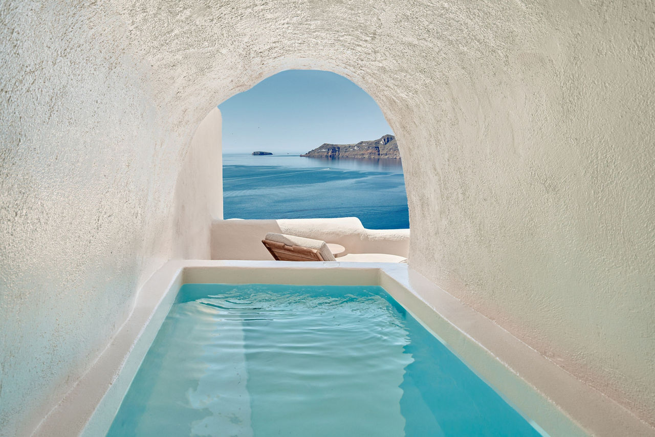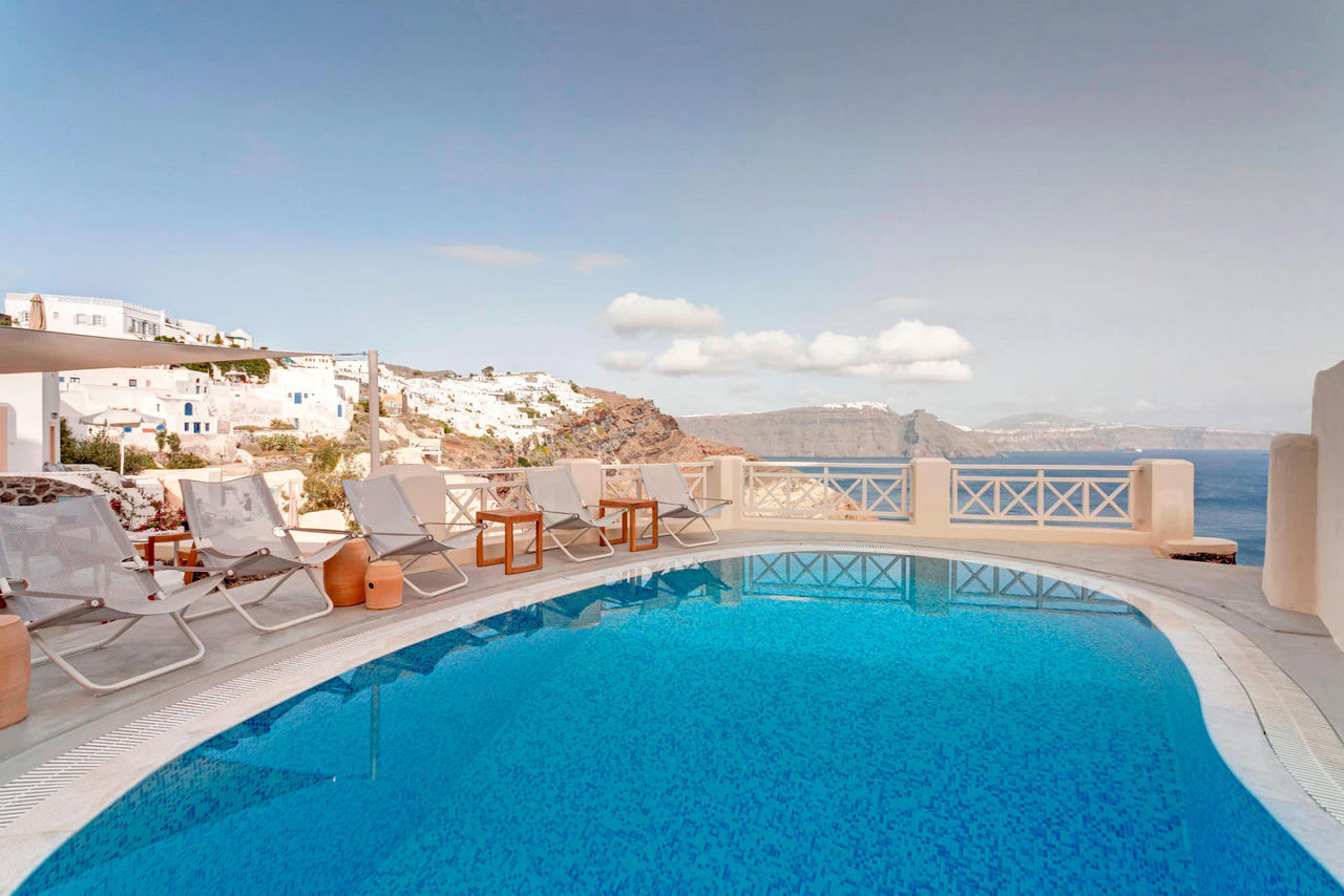 Experience impeccable service and high standards of hospitality at Mystique - a Luxury Collection Hotel. This boutique-style beauty is carved into the rugged caldera cliffside in the heart of iconic Oia, famed for its sunsets and romantic atmosphere. Couples and honeymooners will love the sweeping views from the infinity pool and the bespoke design of the exclusive suites and villas. Evenings can be spent savouring authentic, Greek inspired cuisine in one of the hotels restaurants taking in the view or in one of the upmarket boutiques or café bars nearby.Vibrant suites sleep up to 3 adults and have a bathroom containing a bath and separate shower, air conditioning, hairdryer, bathrobe and slippers, flat screen television and balcony with sunbeds. Room upgrade options are available. Wet Allure suites sleep up to 3 adults and have bathroom containing a shower, air conditioning, hairdryer, bathrobe and slippers, flat screen television, tea and coffee making facilities and balcony with outdoor whirlpool.