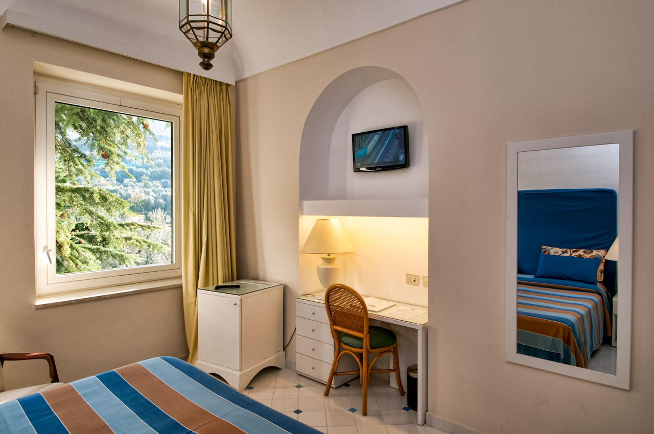 Perched on a hillside, the Grand Hotel Aminta offers panoramic views of Sorrento and the Gulf of Naples. It?s the perfect place for enjoying a serene atmosphere, while being just a short complimentary shuttle ride away from Sorrento?s historic centre. The spacious, light-filled rooms are equipped with all the modern comforts that families, couples and friends need for a memorable stay. Why not relax by the peaceful pool or soak in the breathtaking vistas? Whether you're looking to explore the area or simply soak in the scenery, the Grand Hotel Aminta promises an unforgettable holiday.Double rooms with Garden Views sleep up to 2 adults and have bathroom containing a bath with shower attachment, air conditioning, hairdryer, mini-bar and safety deposit box. Room upgrades are also available.