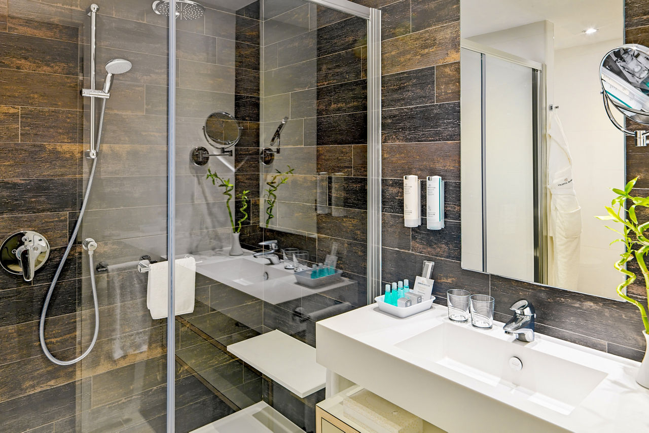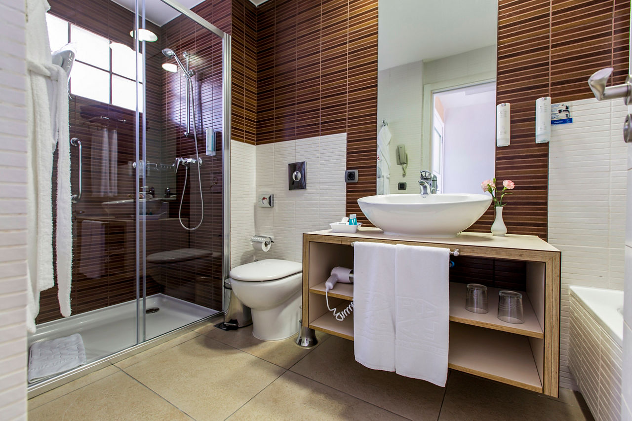 Double rooms sleep 2 adults and have satellite TV, radio, bathroom with hairdryer, bathrobes, slippers and toiletries, air-conditioning, Wi-Fi access and balcony or terrace. Superior rooms and Suites are also available.