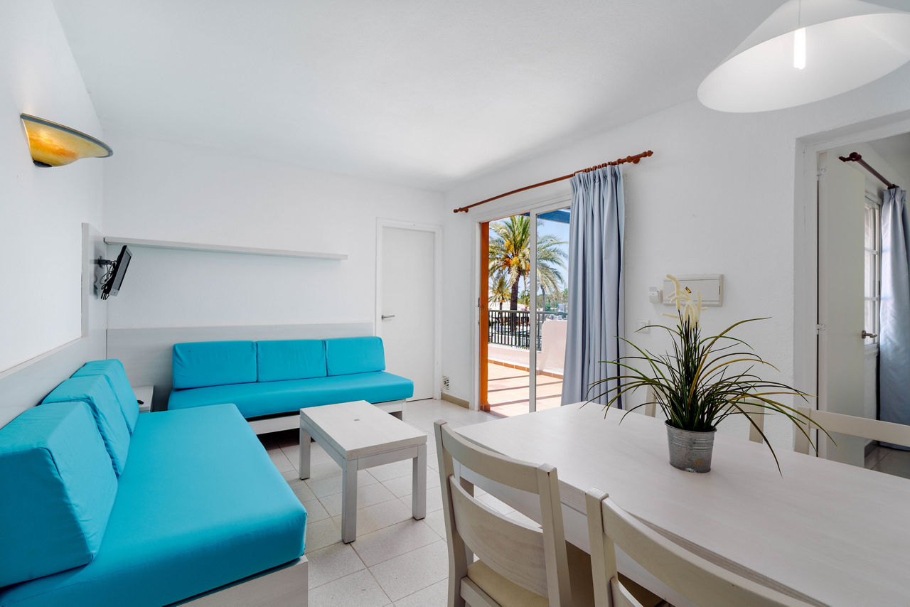 The AluaSun Lago Park boasts a fab location, overlooking the marina and in the heart of Cala'n Bosch. It?s great for families and, during summer, guests have unlimited access to Aquarock Waterpark. The apartments are well-equipped, with two-bedroom options available for larger groups. There?s a children?s club and playground which will keep energetic tots entertained. And with a range of board bases to choose from, you can holiday your way. Want to get out and about? There?s a sandy beach close by. The gentle waves and shallow waters make it an ideal spot for little ones.One Bedroom apartments sleep up to 3 adults and have bathroom containing a bath and shower attachment, air conditioning, hairdryer, flat screen television, double cooking rings, fridge, kettle, microwave, toaster and terrace. Room upgrade options are also available.