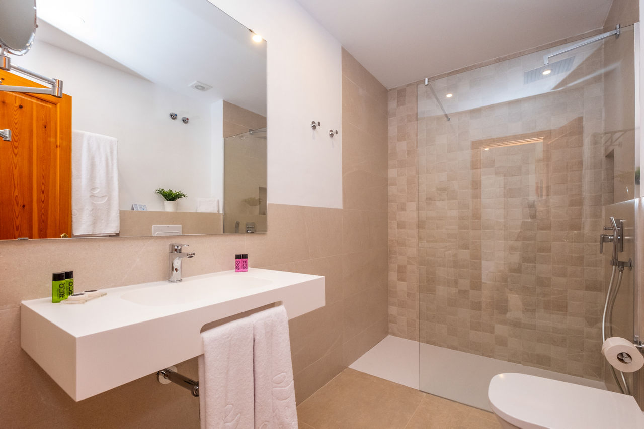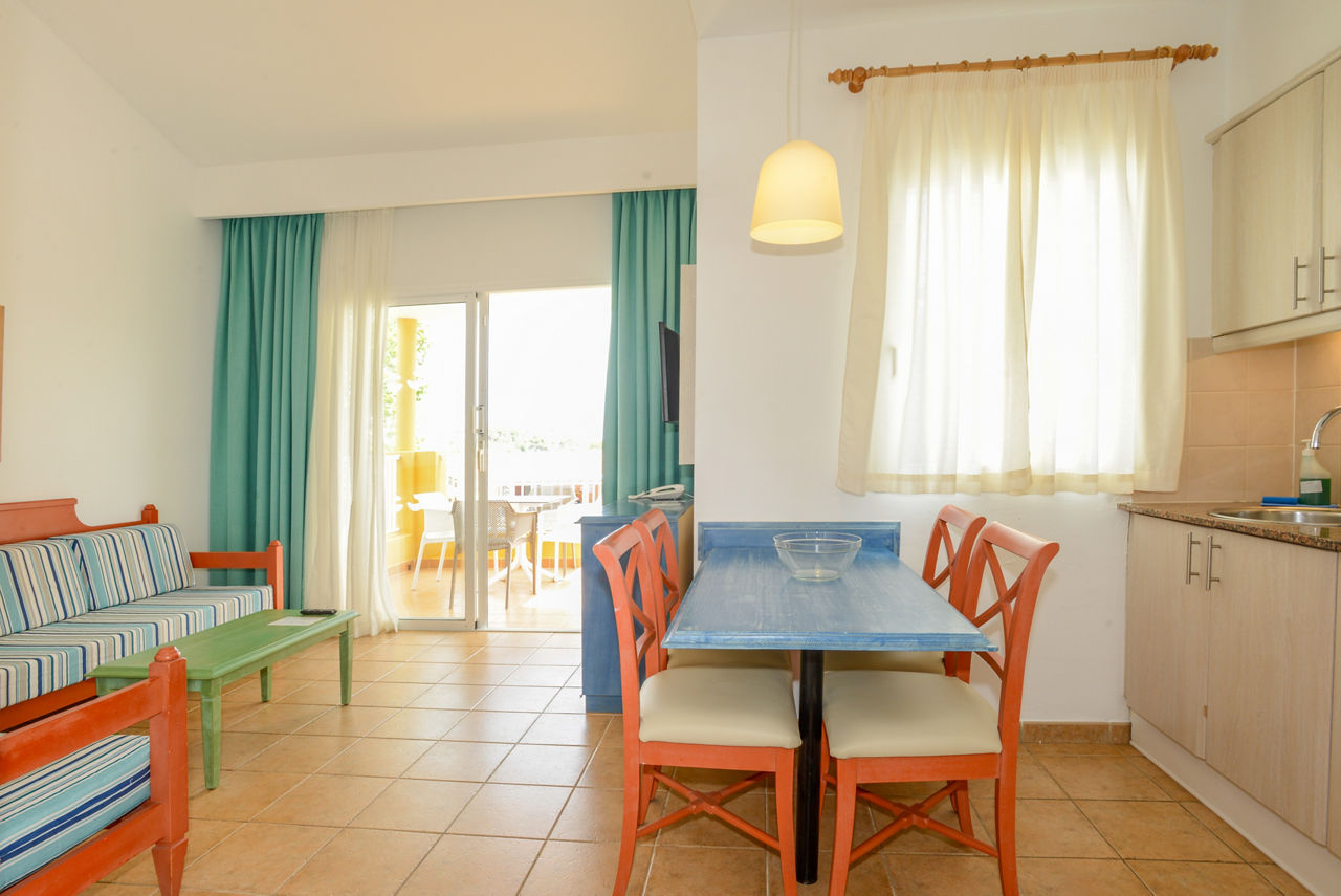 One Bedroom apartments sleep up to 3 adults and 1 child and have bathroom containing a bath or shower, air conditioning, hairdryer, flat screen television, double cooking rings, fridge, kettle, microwave, toaster and balcony or terrace. Two Bedroom apartments sleeping up to 5 adults and 1 child are also available.