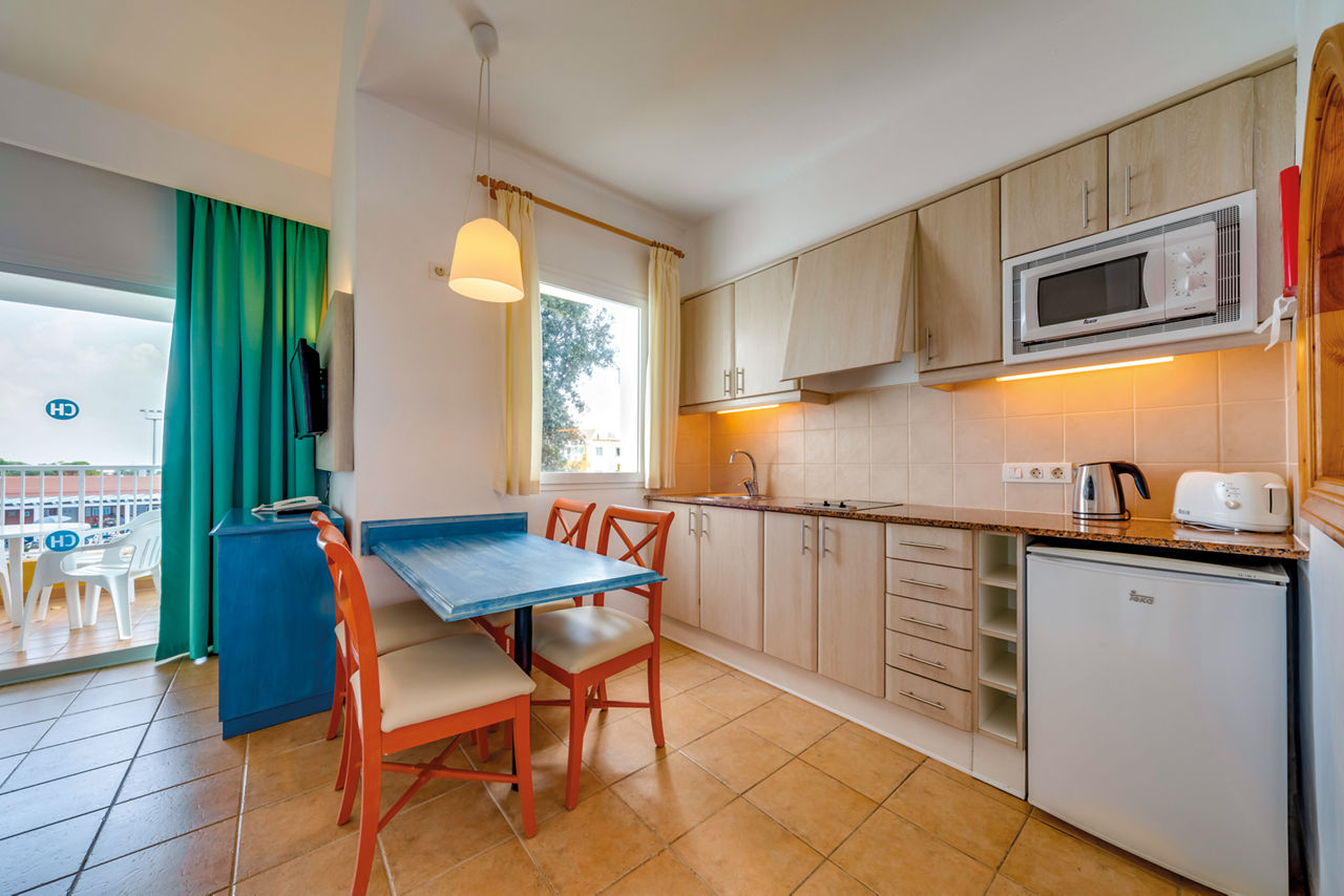 The Isla del Aire Apartments are a superb family orientated complex located close to the beach and resort centre in Punta Prima. Set in beautifully manicured gardens, with a large pool and well-appointed apartments, the Isla del Aire Apartments are perfect for a memorable holiday. Designed with families in mind there is a playground for the little ones as well as a range of spacious rooms with large terraces available. With all this on offer, you really can fit everything into your next holiday to Menorca!One Bedroom apartments sleep up to 3 adults and 1 child and have bathroom containing a bath or shower, air conditioning, hairdryer, flat screen television, double cooking rings, fridge, kettle, microwave, toaster and balcony or terrace. Two Bedroom apartments sleeping up to 5 adults and 1 child are also available.