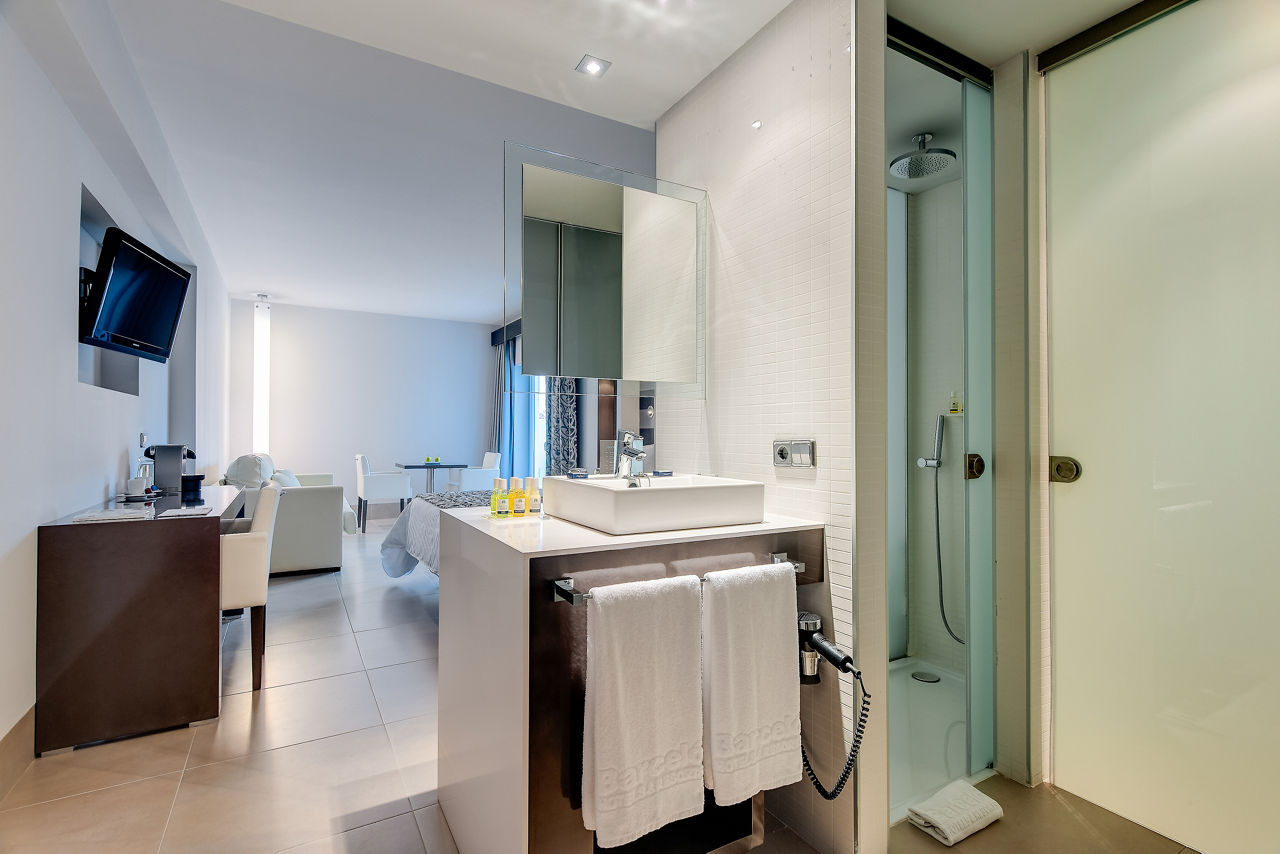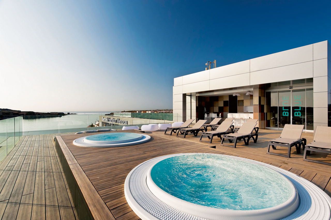Super-stylish and contemporary is the name of Barcelo Hamilton?s game. This adults-only haven offers a relaxing atmosphere, which mirrors the pace of the pretty harbour in nearby Es Castell. After checking in, your first port of call should be the rooftop terrace, designed for chilled evenings overlooking Mahon. RSuperior rooms with Pool View sleep 2 adults and have bathroom with shower, hairdryer, air conditioning, satellite TV, free Wi-Fi, tea and coffee making facilities and balcony or terrace. Superior rooms with Sea View sleeping 2 adults, some with balconies, Junior suites sleeping 2 adults and Junior suites with Sea View sleeping 3 adults are also available. Please Note: the bathroom images shown are the style across the whole hotel.