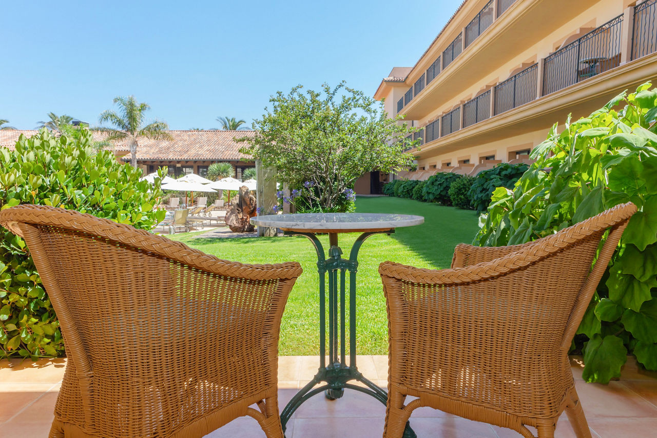 Double and Twin rooms sleep up to 3 adults and have airconditioning, satellite TV, full bathroom, hairdryer, bathrobes, pool towels and balcony or terrace. Junior suites, Double and Twin Garden Terrace rooms on the ground floor with direct access to the garden from the terrace and Double and Twin rooms for Sole Use are also available.