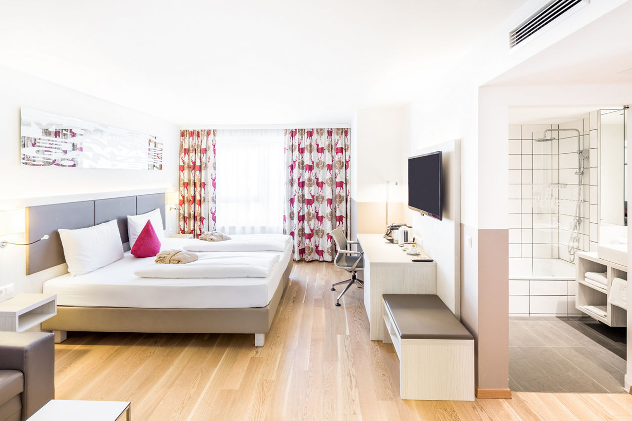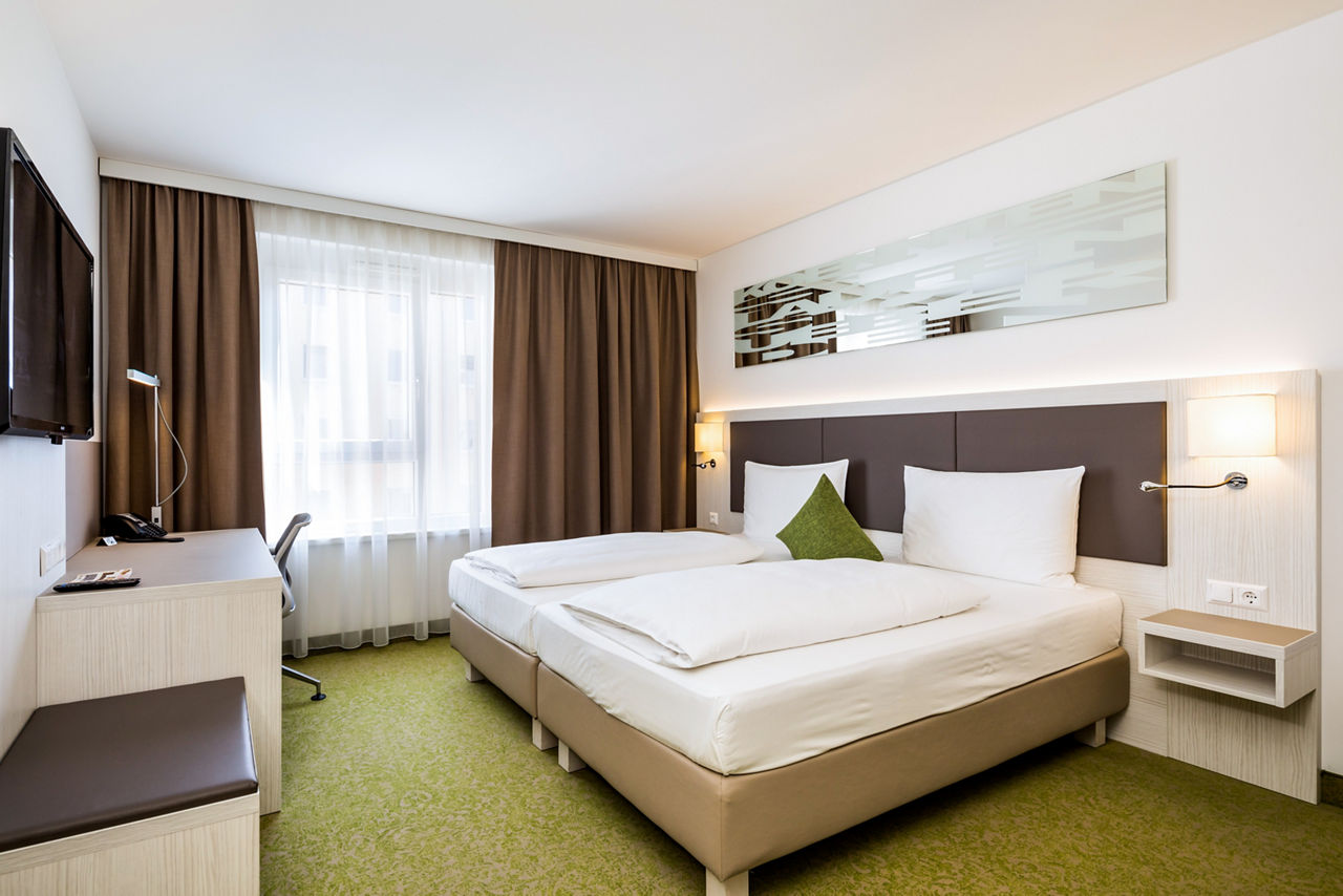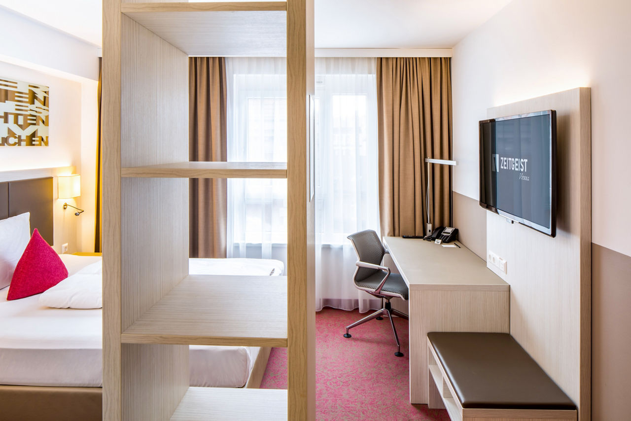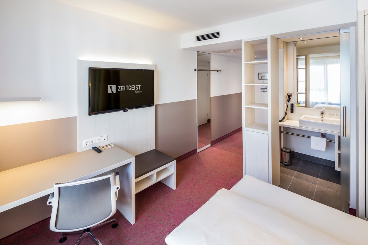 An unparallel position near the central train station and with great access to all the best of Vienna?s public transport system, the Zeitgeist Vienna Hauptnahnhof is more than just a base for visiting this historic city. The calm comfortable rooms are great for getting your head down after exploring, and with an extensive buffet breakfast showcasing local organic produce, feel set for the day ahead. Why not explore on the hotels own bikes to see the city from a different angle! Or relax in the sauna after a game of badminton or mini golf in the courtyard. Plus, a restaurant and bar on site give you the option to eat ?out? or ?in? to sample delicious local cuisine.Double or Twin rooms sleep up to 2 adults and have bathroom containing a shower, air conditioning, hairdryer, safe* and flat screen television. Room upgrade options and Sole Use rooms are also available.