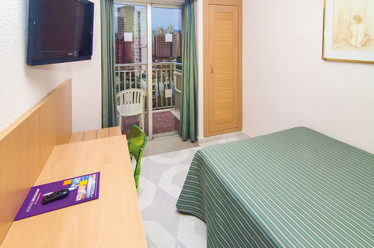 With the golden sands of Levante Beach on your doorstep and all the fun of Benidorm at your fingertips, Hotel Servigroup Pueblo Benidorm?s a box-ticker. A kids? club, great entertainment programme and bright buffet restaurant give it an all-ages appeal. If you want to get out and about and explore a different side of Benidorm, the Old Town?s within walking distance and well worth a visit. There?s a range of board bases to choose from, so you can holiday your way. Friendly service and a welcoming atmosphere add the cherries on top!Twin rooms sleep up to 4 adults or 2 adults and 2 children and have either a full bathroom or walk in shower, air-conditioning or heating, hairdryer, flatscreen satellite TV, mini-fridge, balcony. Single rooms are available at a supplement.