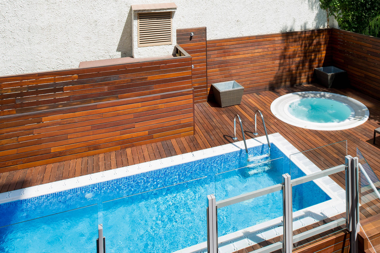 Outdoor pool with whirlpool.Complete Booking