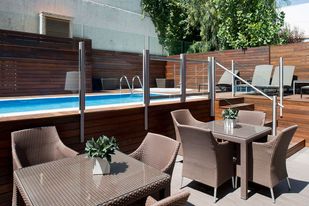 Catalonia Mikado is a charming and modern hotel located just on the outskirts of Barcelona in a peaceful residential area. It offers a calm retreat while being well-connected to the city centre and its key attractions. The hotel has a pleasant interior garden with an outdoor pool and whirlpool, as well as a solarium with sun loungers. Have a drink at the Gastrobar terrace after a day of venturing out into the city and then have a great night?s sleep in the spacious and modern rooms.Standard Double rooms sleeps up to 2 adults and have a bathroom containing a shower, air conditioning, hairdryer, safety deposit box and flat screen television. Room upgrades and Sole Use rooms are also available.