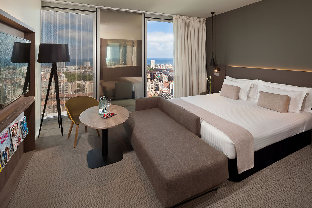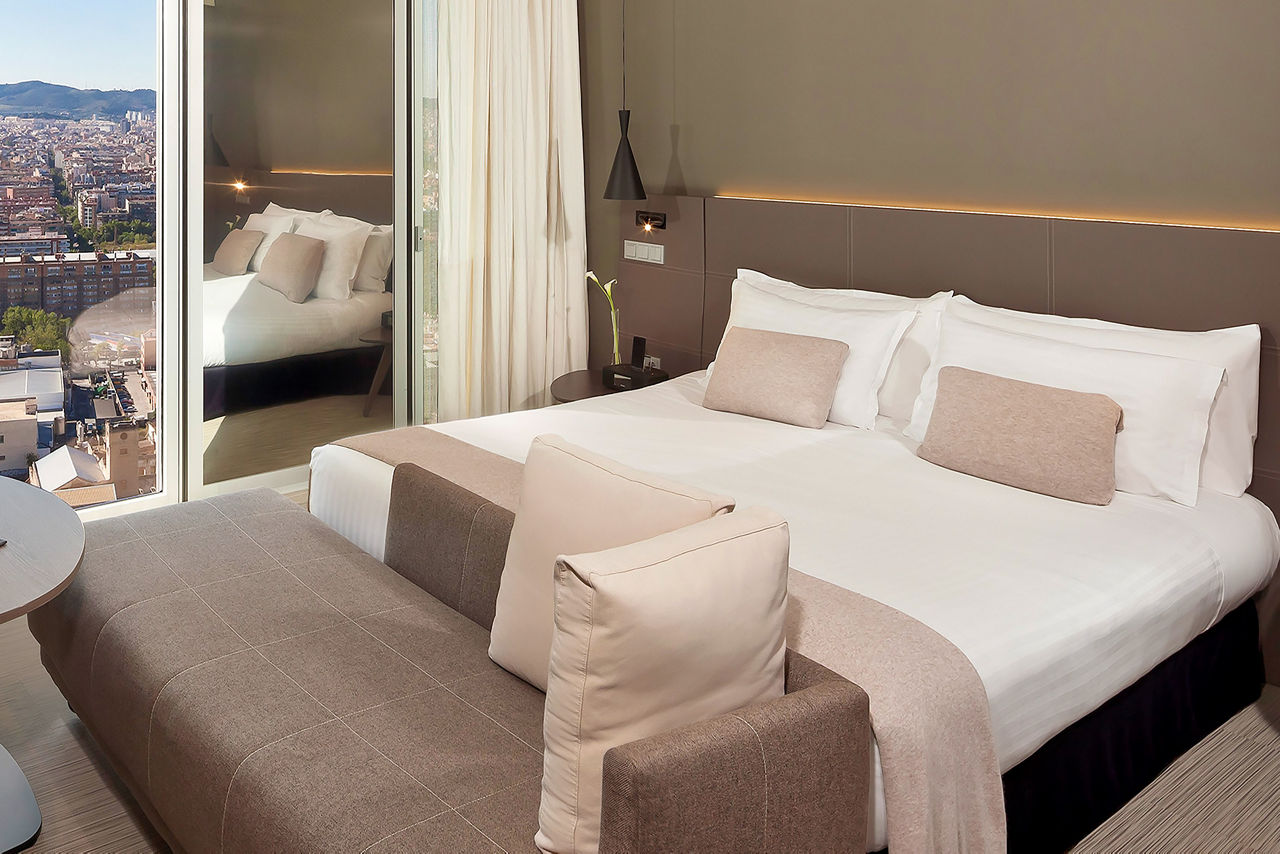 Meli? Barcelona Sky stands as one of the most iconic architectural landmarks on the Barcelona skyline, designed by the renowned French architect Dominique Perrault. This luxurious space seamlessly combines a passion for design with meticulous attention to detail, offering a truly exceptional experience. Featuring a range of impressive facilities, including a seasonal rooftop pool, a skyline bar, and a terrace with breathtaking 360? views over the city and the Mediterranean, the hotel provides both modern elegance and top-tier service. Located in the vibrant Poblenou district, Meli? Barcelona Sky offers sophisticated rooms equipped with cutting-edge technology and personalized services to ensure the utmost comfort. For an elevated experience, indulge in The Level room, where you'll enjoy VIP service, luxury extras, and exclusive access to The Level Lounge. Whether you're here to explore or unwind, Meli? Barcelona Sky is the perfect base for experiencing all the city has to offer.Double Melia rooms sleep 2 adults and have bathroom containing a shower, air conditioning, hairdryer, flat screen television and safety deposit box.