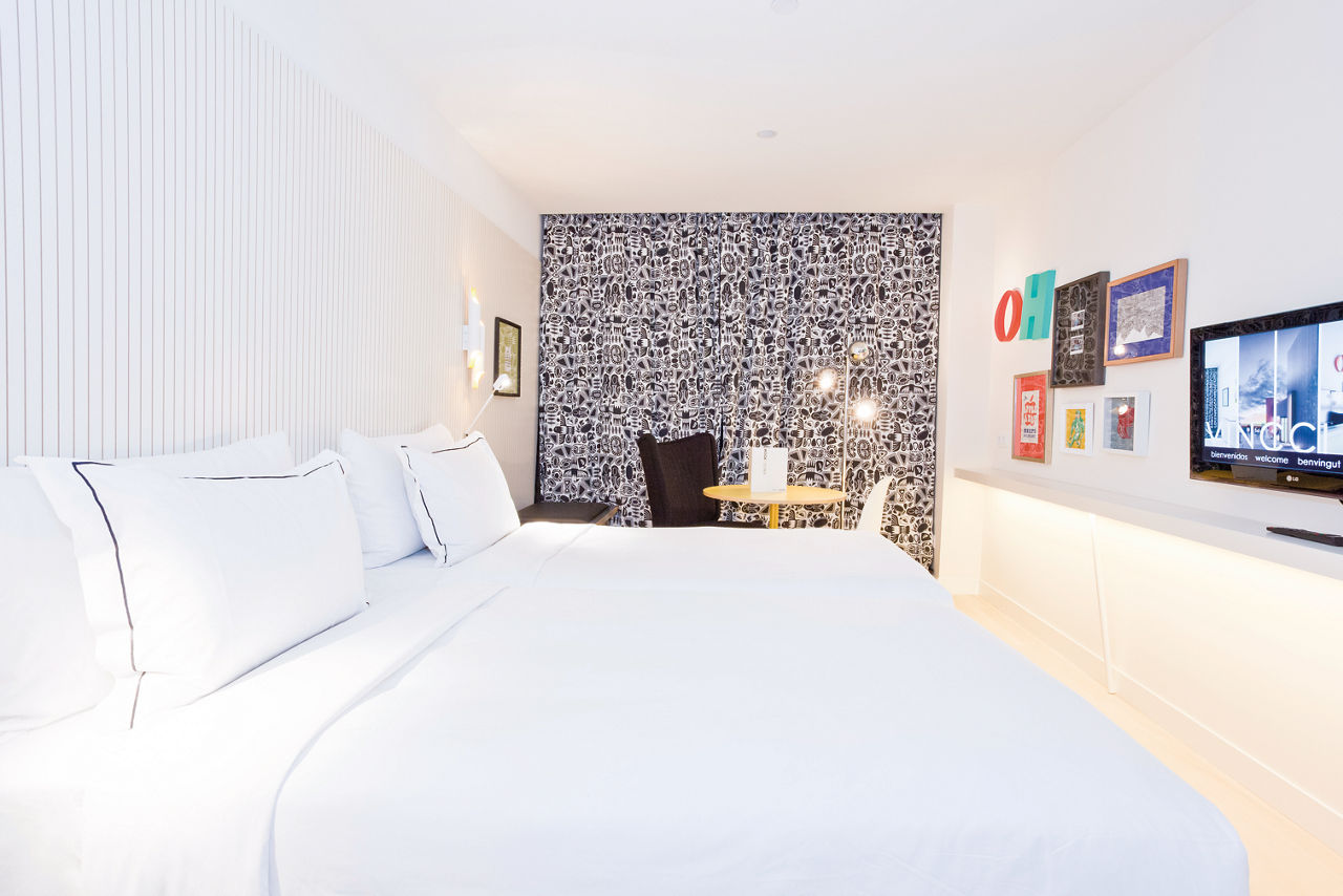 This modern and stylish hotel, with interior decoration by national and international artists, is just a 15-minute walk from Mar Bella beach. A variety of bars, restaurants and shops can be found in the surrounding area and the Diagonal Mar Shopping Centre is only 400m away. Transport links are located close by so access to the city couldn't be easier. With comfortable rooms that have all the facilities you need, this hotel is a perfect choice for a beach and city break.Standard Double and Twin rooms sleep up to 2 adults and have bathroom containing a shower, air conditioning, hairdryer, flat screen television, mini-bar* and safety deposit box.