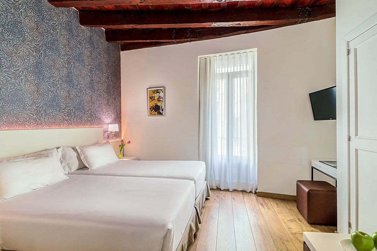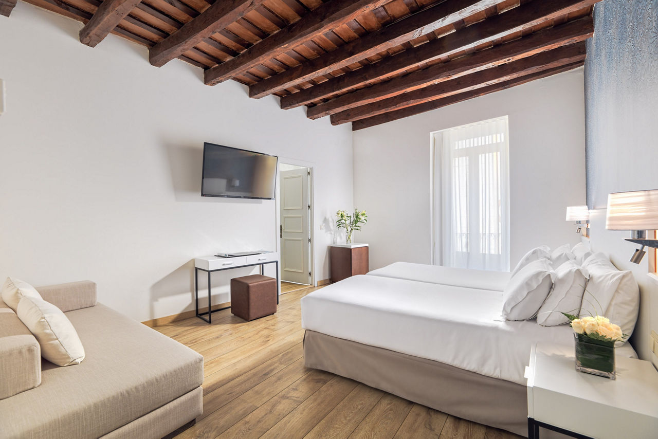 Located in a charming area of the Gothic Quarter in an 18th century listed building, the H10 Raco del Pi fuses modern and tradition perfectly. Close to many of the main attractions such as the famous Las Ramblas shopping street, and Placa de Catalunya, this hotel is perfect for sightseeing and enjoying the Spanish way of life. Breakfast is served in the restaurant and after a long day exploring why not have a relaxing drink in the bar before heading out to sample the nightlife and local tapas?Double rooms sleep up to two adults and have bathroom containing a bath or shower, air conditioning (15 Apr-31 Oct), hairdryer, flat screen television, mini-bar* and safety deposit box*. Triple rooms and Double rooms for sole use are also available.