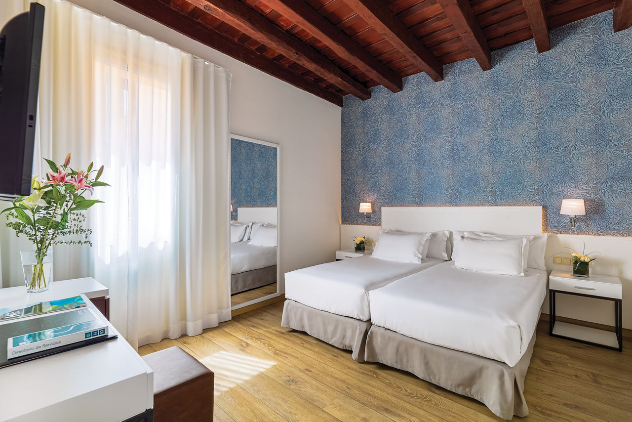 Double rooms sleep up to two adults and have bathroom containing a bath or shower, air conditioning (15 Apr-31 Oct), hairdryer, flat screen television, mini-bar* and safety deposit box*. Triple rooms and Double rooms for sole use are also available.