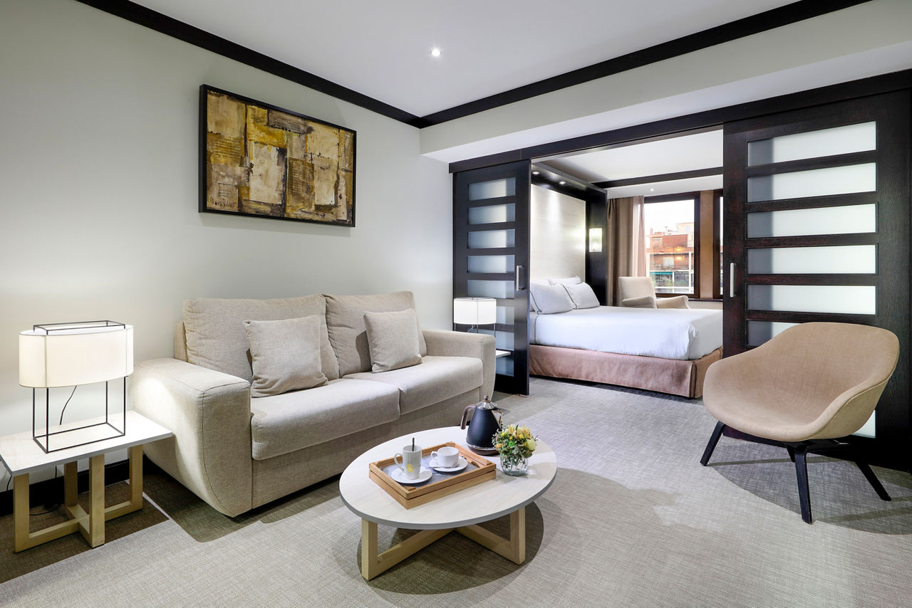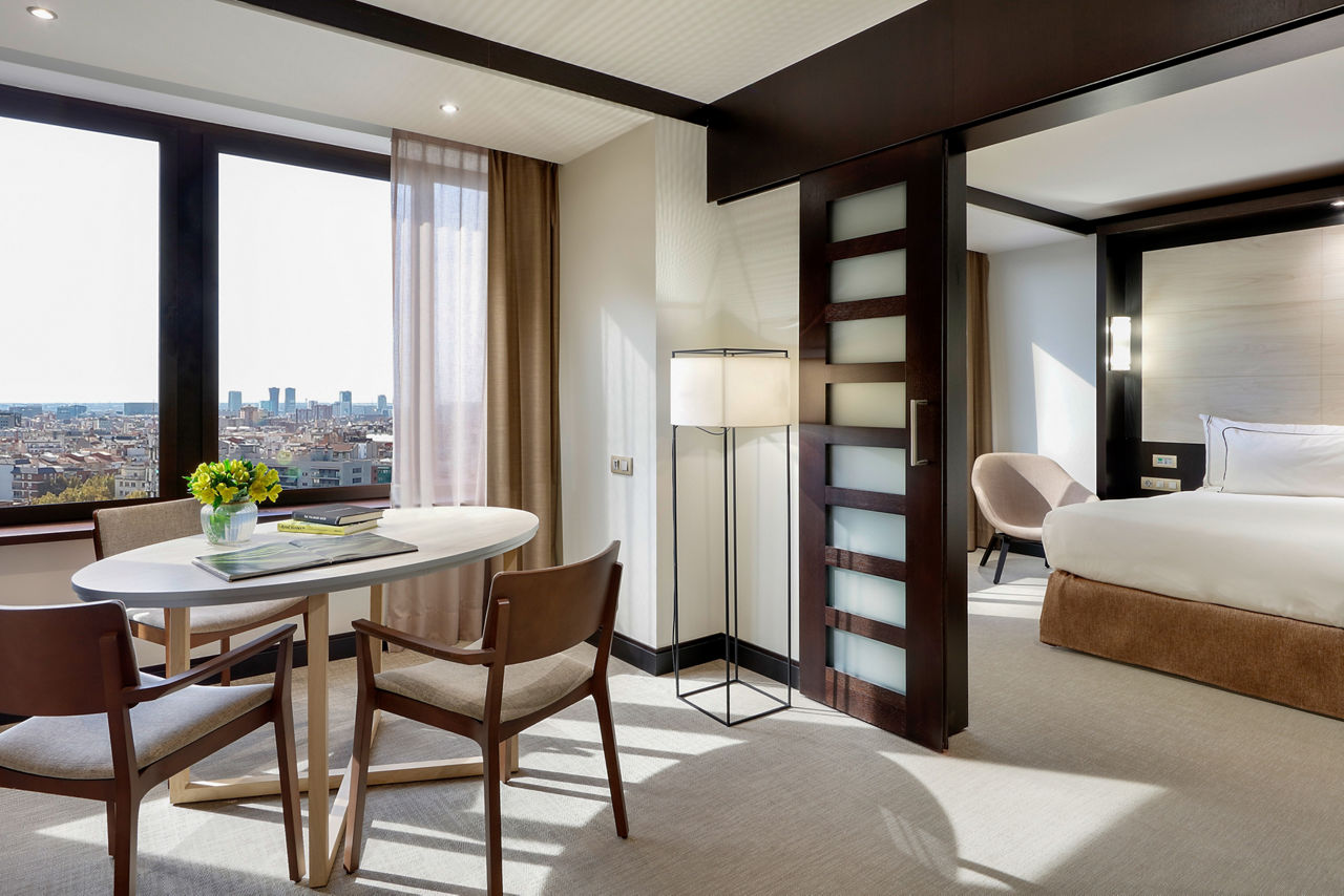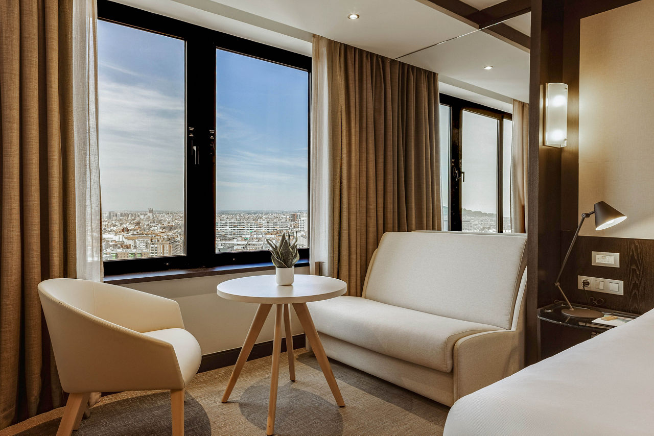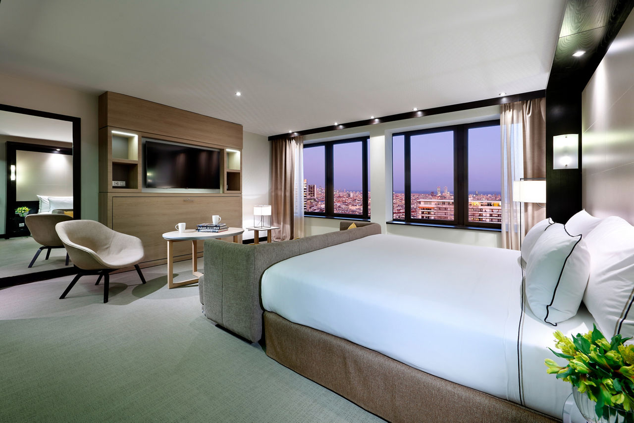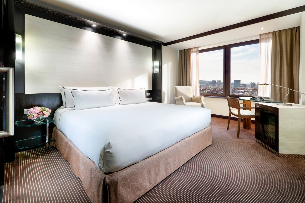 Located in the heart of the Corts district, a few steps from the iconic Avenida Diagonal, discover the Melia Barcelona Sarria, where elegant design meets comfort and cutting-edge amenities. This hotel offers the perfect base for exploring nearby attractions, shopping, and entertainment. With its cosmopolitan and sophisticated atmosphere, the hotel features unique services such as the serene Serena Spa, exquisite dining at the Prezzemolo restaurant, and exclusive privileges through The Level. The trendy bar, with its chic urban design that seamlessly blends contemporary style and comfort, is the perfect spot for pre-dinner drinks. For an even more elevated experience, upgrade to a Level room and enjoy VIP service, exclusive access to The Level Lounge, and a range of luxury perks. Enhance your experience in Barcelona to the highest level in this exclusive city hotel.Double rooms sleep sleep 2 adults and have bathroom containing a bath with shower attachment, air conditioning, hairdryer, flat screen television, mini-bar* and safety deposit box.
