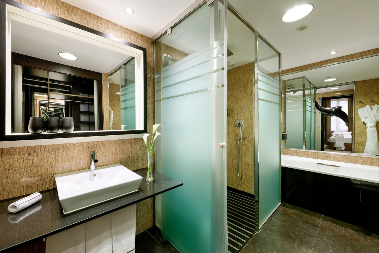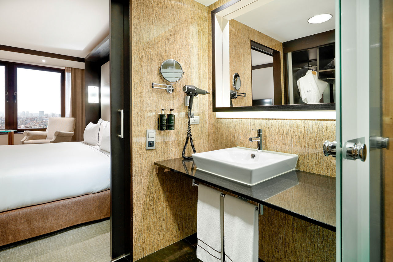 Double rooms sleep sleep 2 adults and have bathroom containing a bath with shower attachment, air conditioning, hairdryer, flat screen television, mini-bar* and safety deposit box.