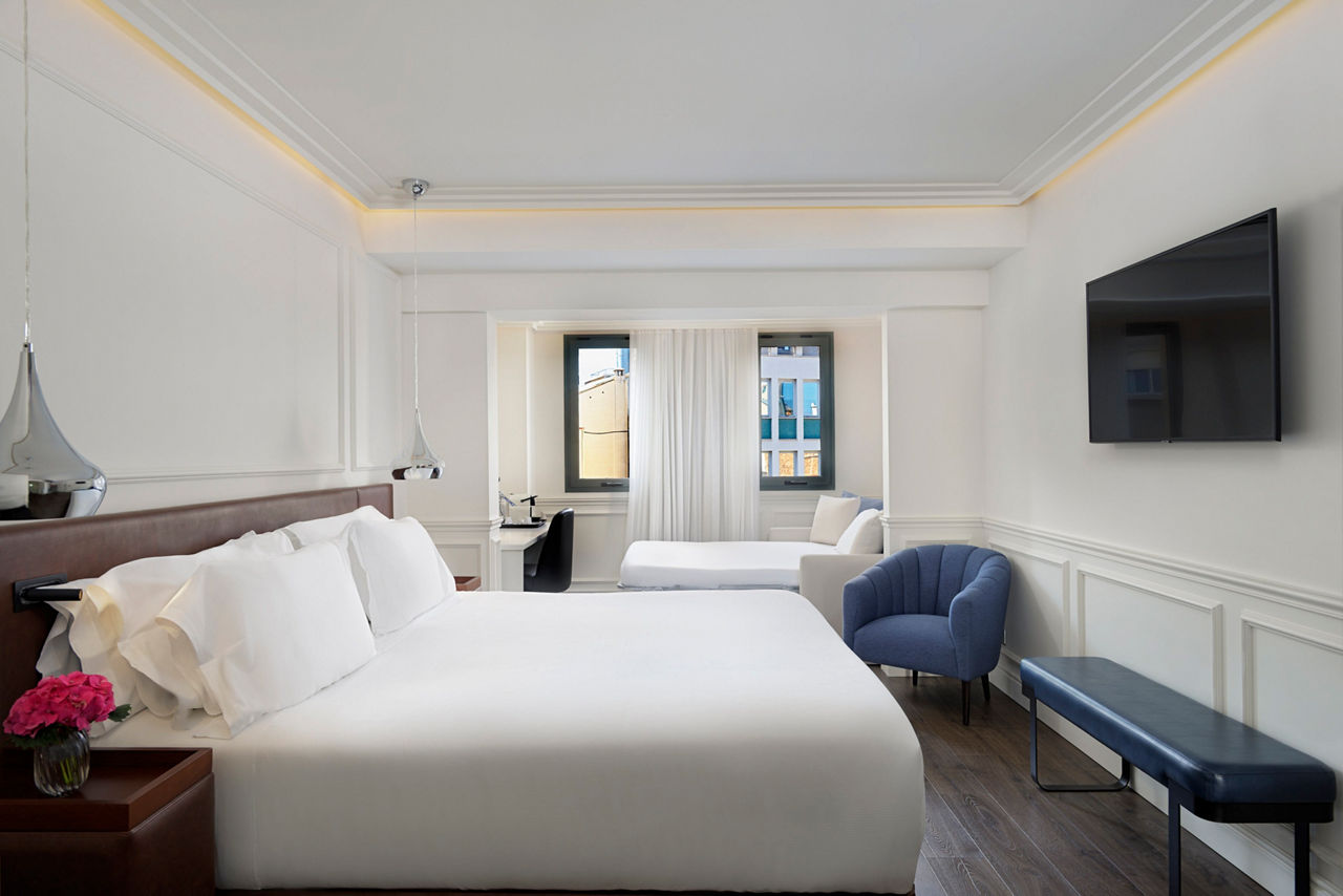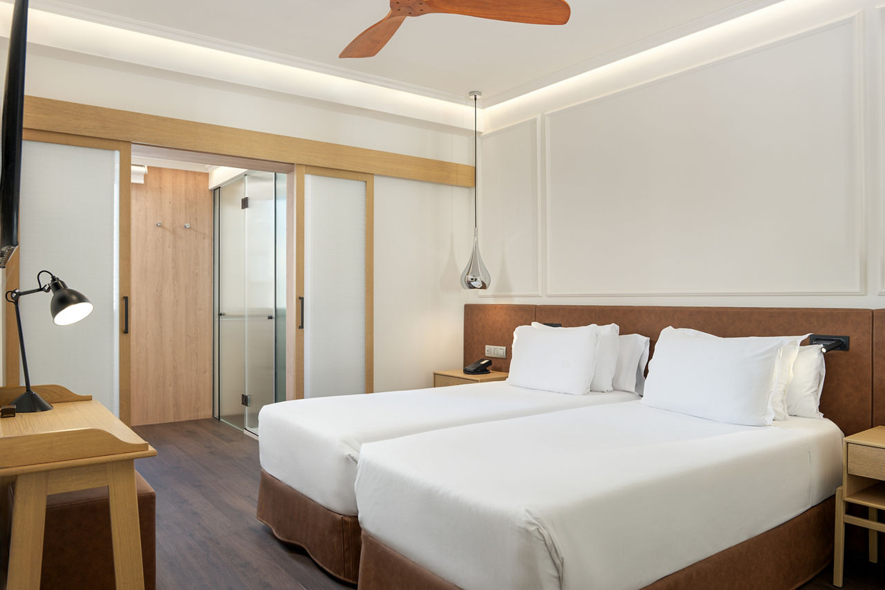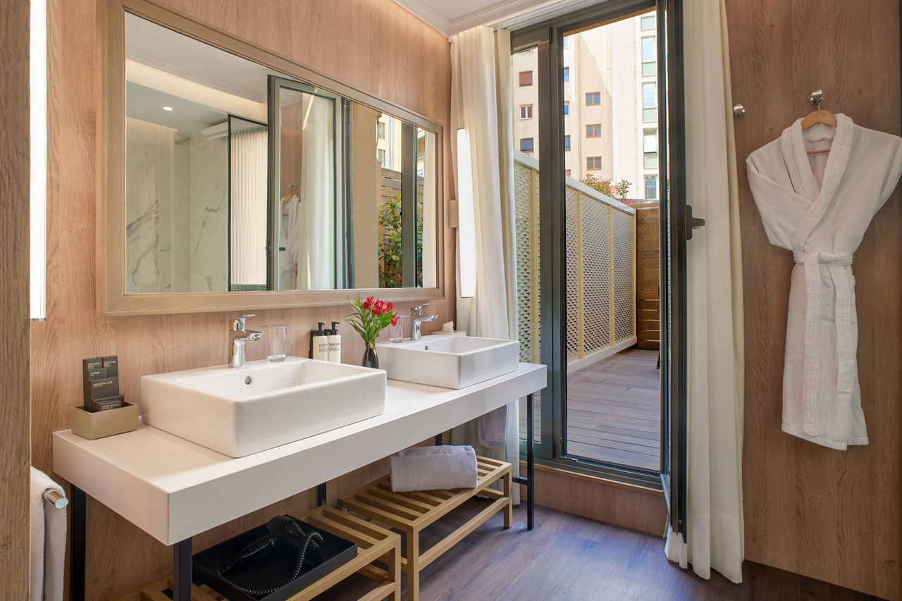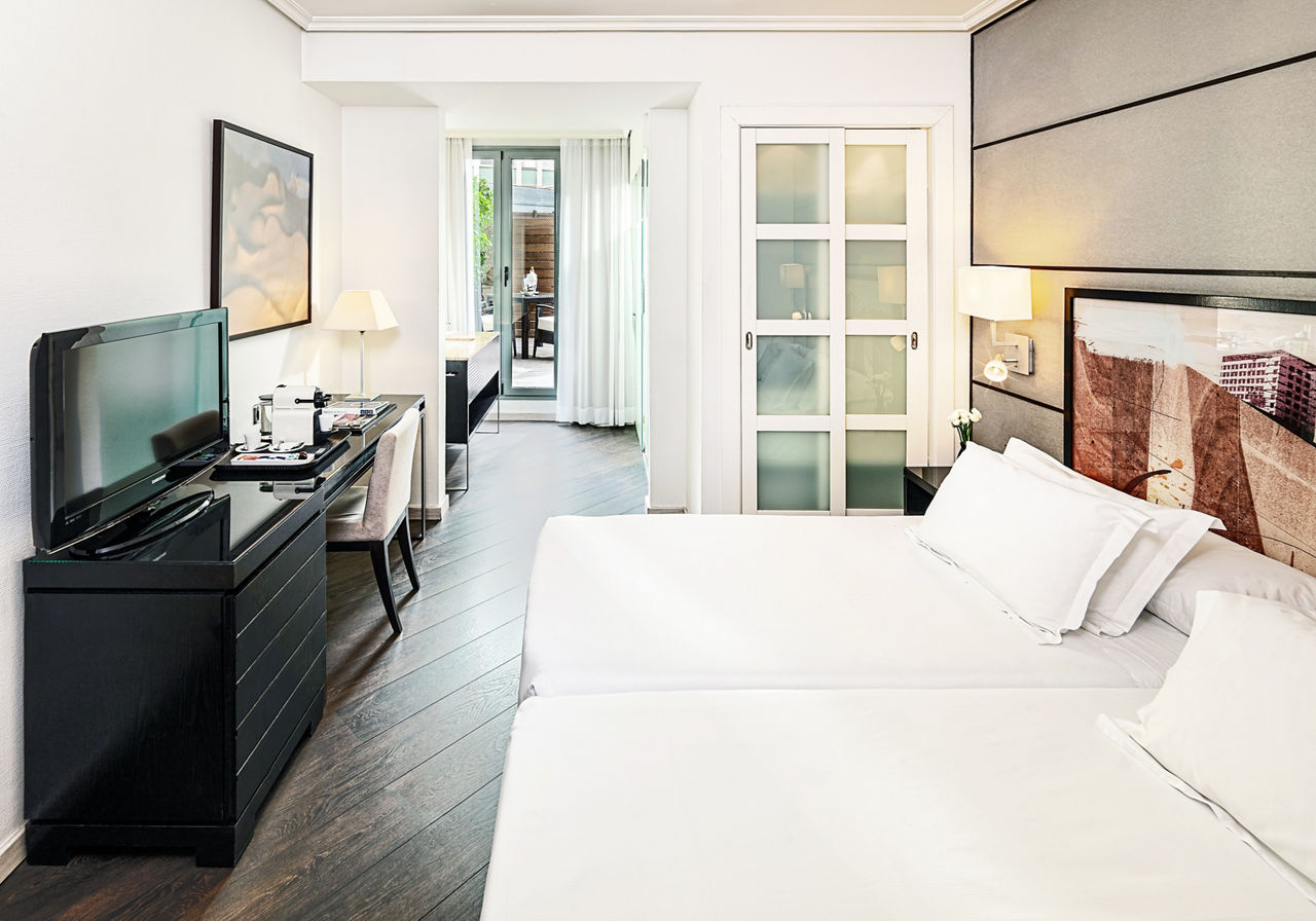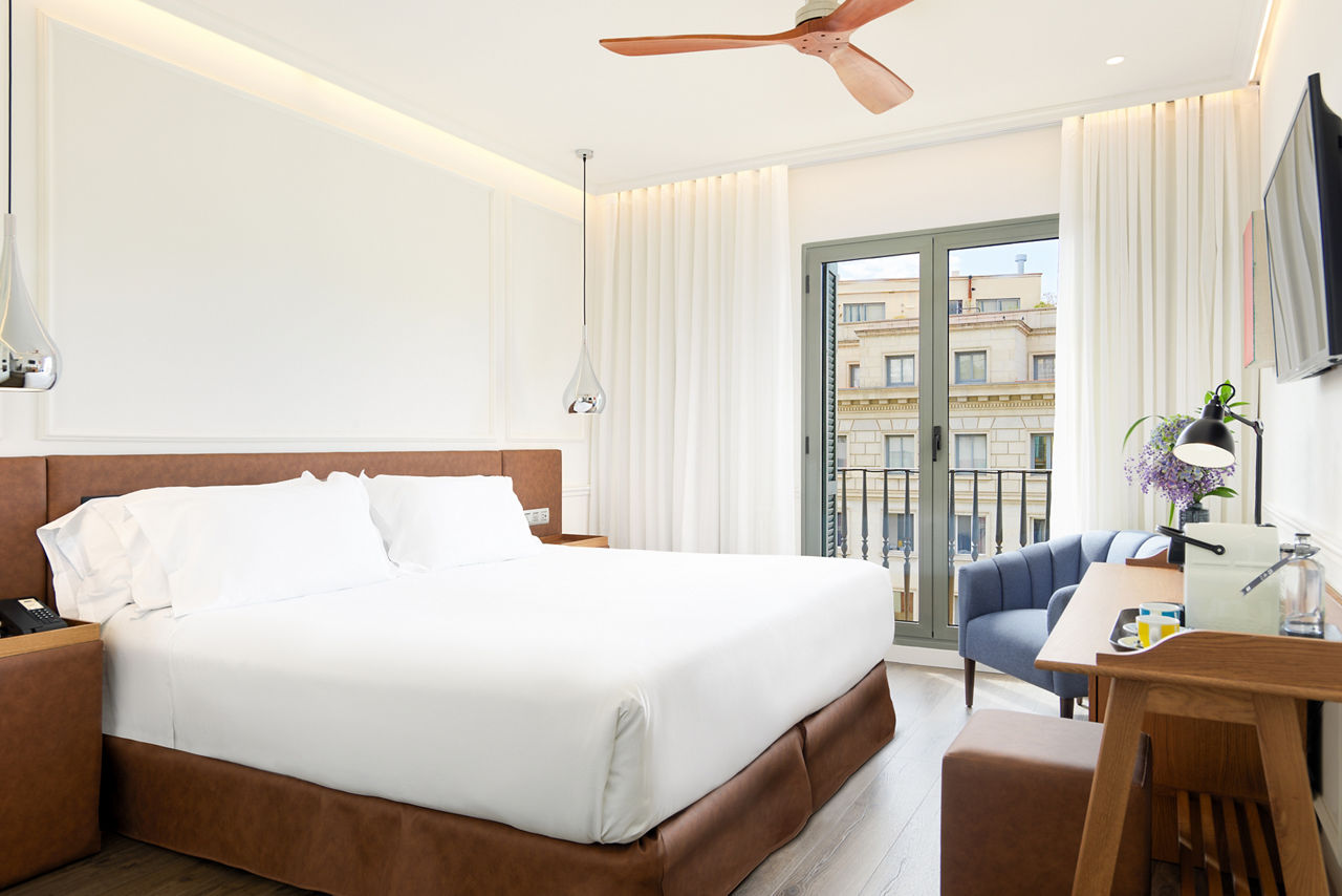 The H10 Universitat is located in the heart of Barcelona, only a short walk from Pla?a Catalunya and the Gothic Quarter. The hotel is housed in a perfectly-restored 19th century building with a contemporary modern interior design and comfortable rooms. After a long days sightseeing you can relax in the lounge bar or try out the roof top terrace bar with panoramic views of this fabulous city, definitely not to be missed.Double rooms sleep two adults and have bathroom containing a bath or shower, air conditioning (01 Mar to 01 Nov), hairdryer, flat screen television, mini bar* and free Wi-Fi.